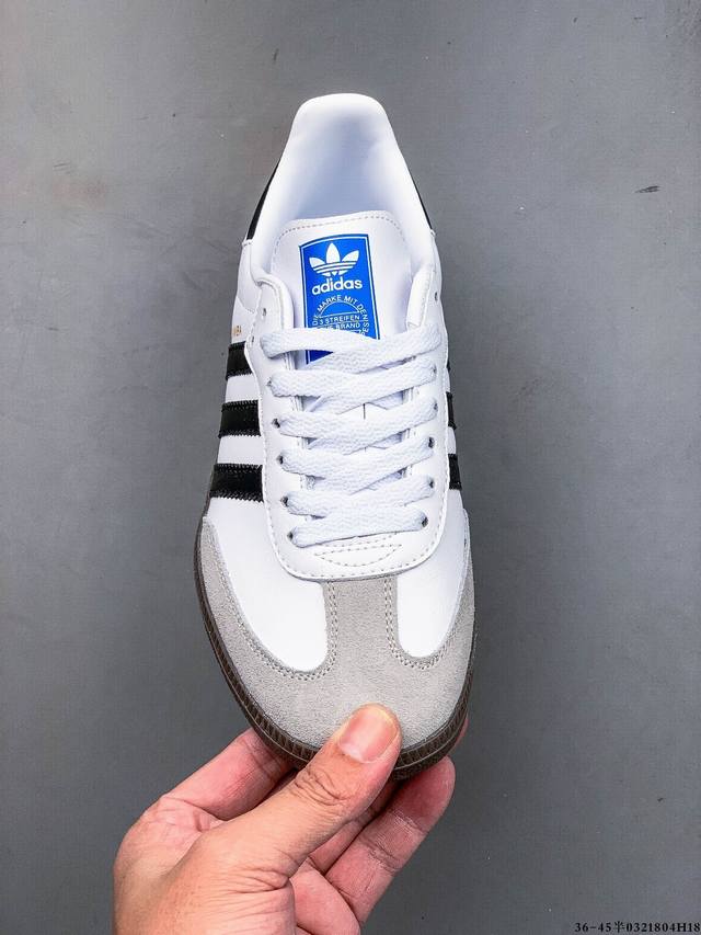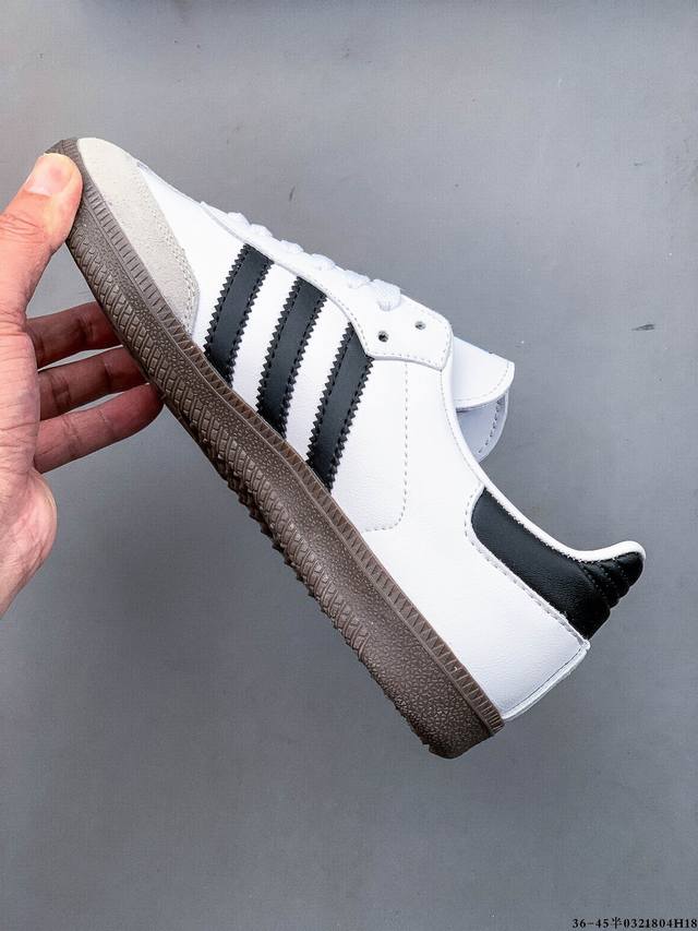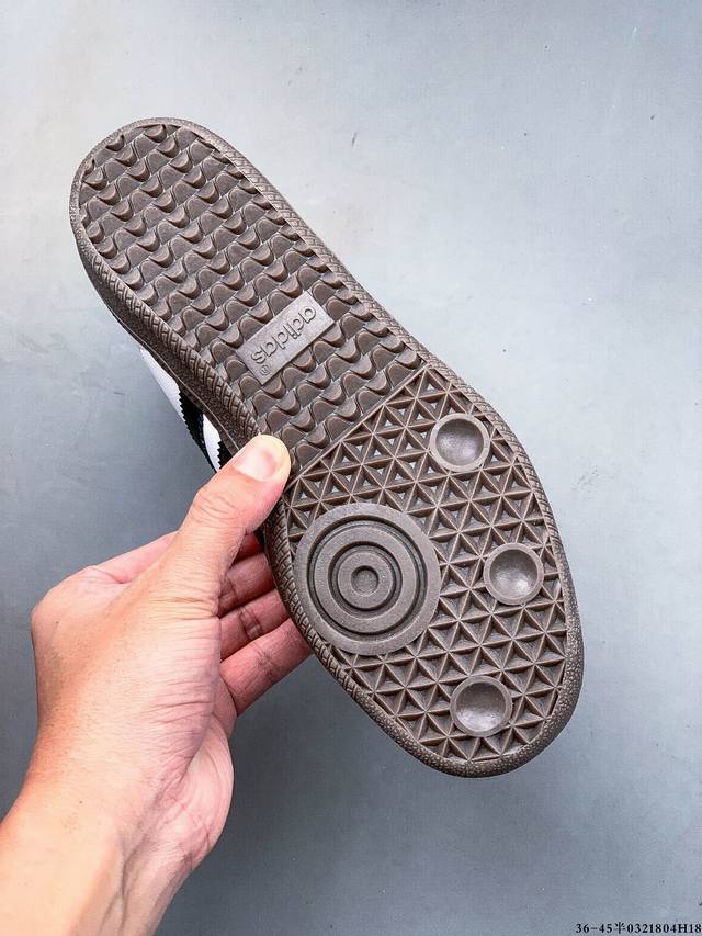adidas 近70年的经典Samba Og 修长的鞋楦,略微尖尖的鞋头,翻毛皮的鞋头拼接,这些我们都看得到的元素正是Samba的设计灵魂
