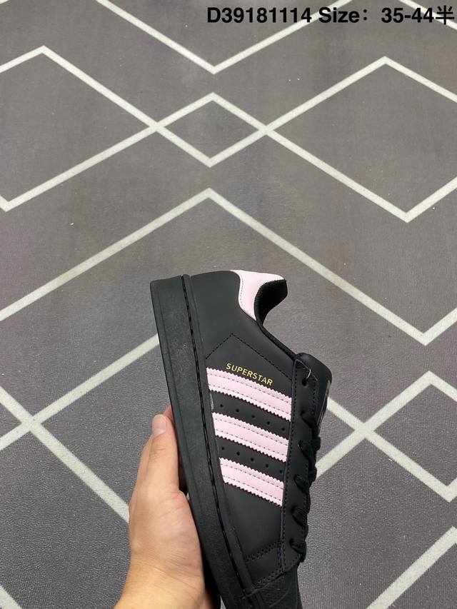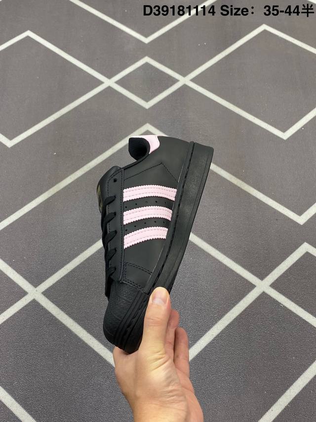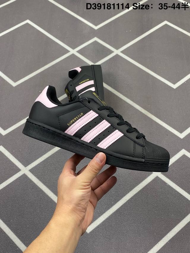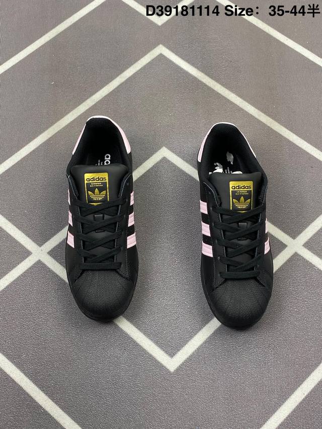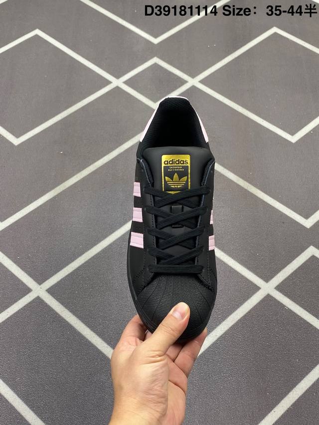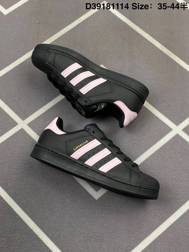 阿迪达斯 Adidas Superstar 三叶草经典贝壳头系列 新款休闲板鞋潮流男女士运动鞋 ,鞋面柔软皮革材质 标志性的贝壳鞋头,锯齿三条纹,简约的线条。就连版型和比例,都在向1982年的鞋款致敬。可谓“形神兼备”的复刻。无论在哪,无论去哪,你或许都需要这样一双既舒适又时尚的鞋。1970年问世于篮球场的Adidas Superstar,集舒适与时尚于一身。这款经典鞋,缀低调图案,灵感源自公共交通地图。设计简约,旨在伴你出行。心动不如行动,系好鞋带,出发吧。