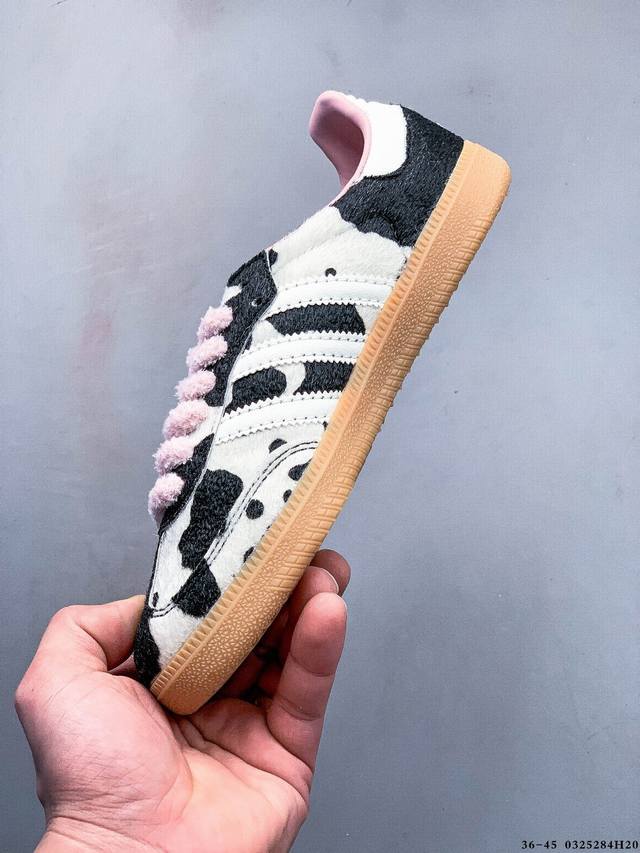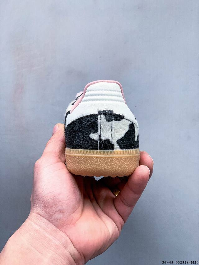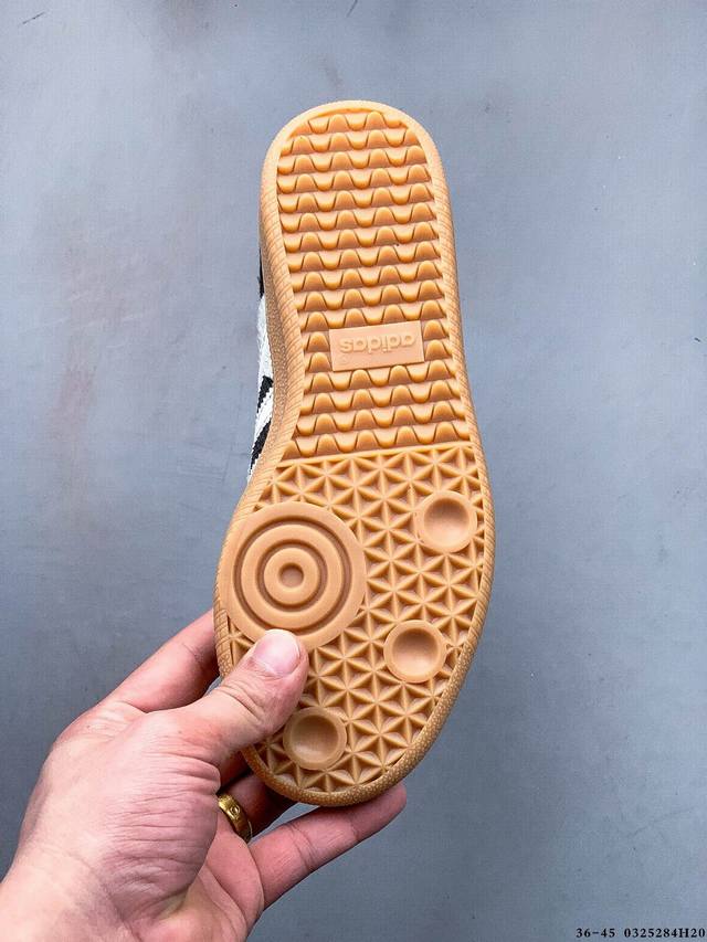 adidas 近70年的经典Samba Og 修长的鞋楦,略微尖尖的鞋头,翻毛皮的鞋头拼接,这些我们都看得到的元素正是Samba的设计灵魂