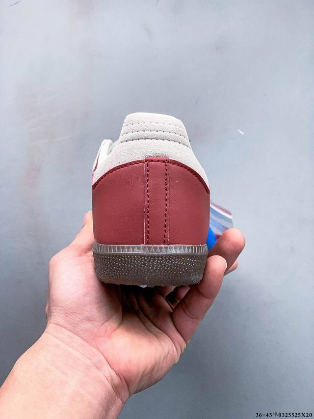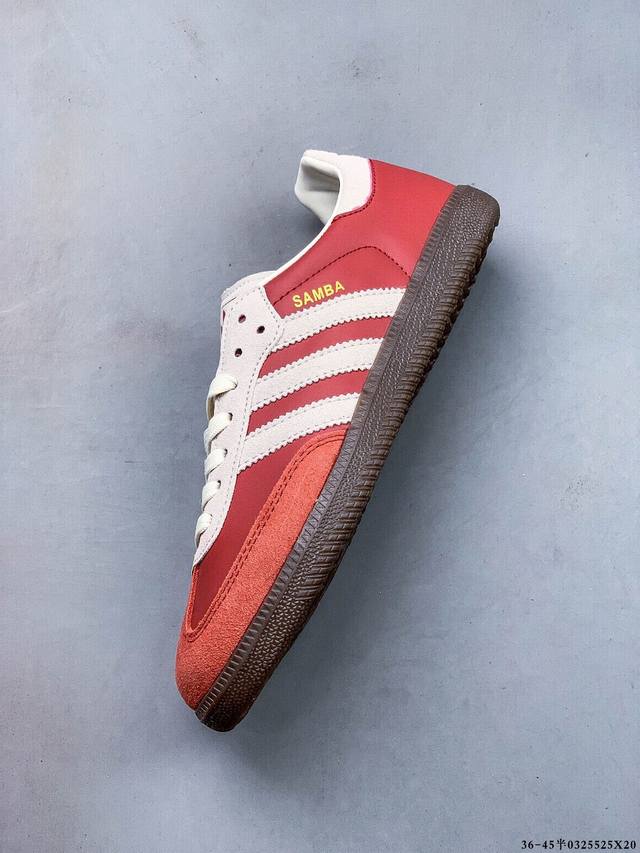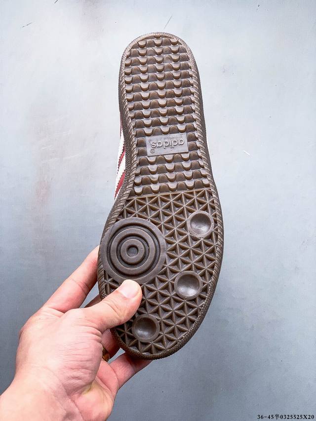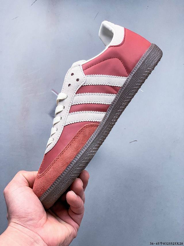 adidas 近70年的经典Samba Og 修长的鞋楦,略微尖尖的鞋头,翻毛皮的鞋头拼接,这些我们都看得到的元素正是Samba的设计灵魂