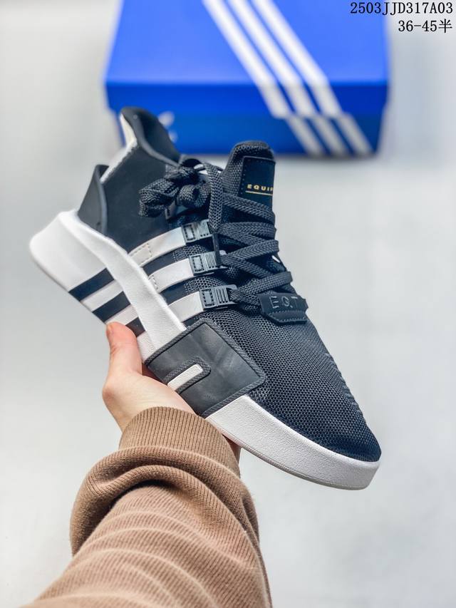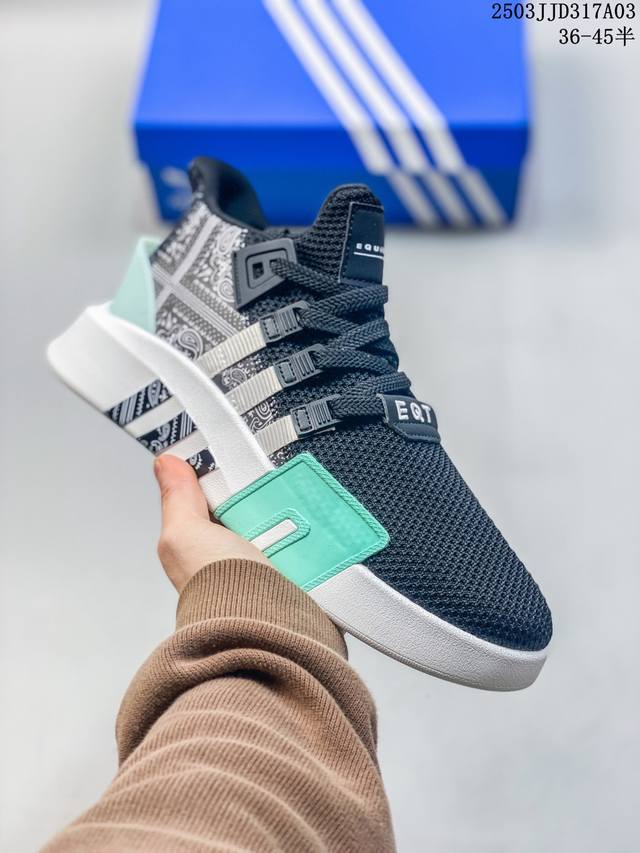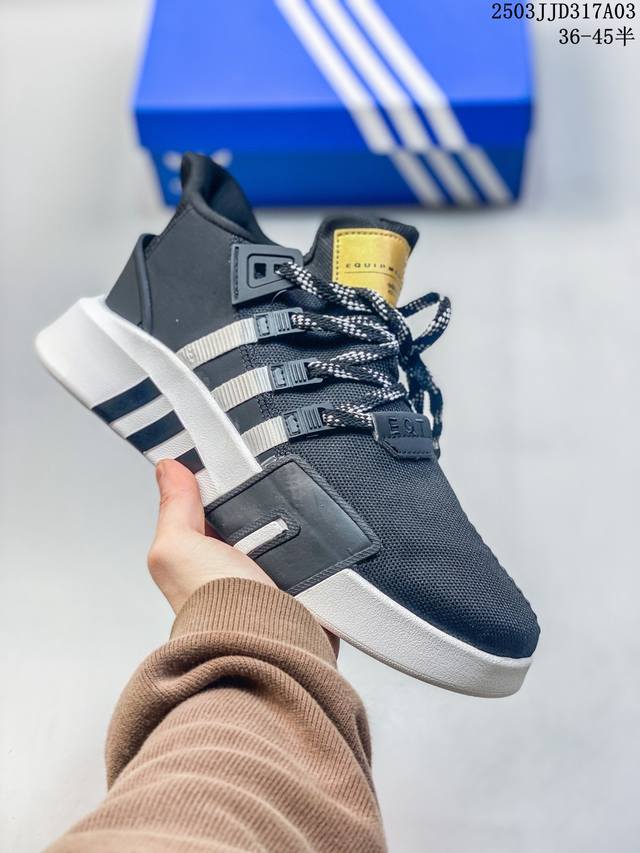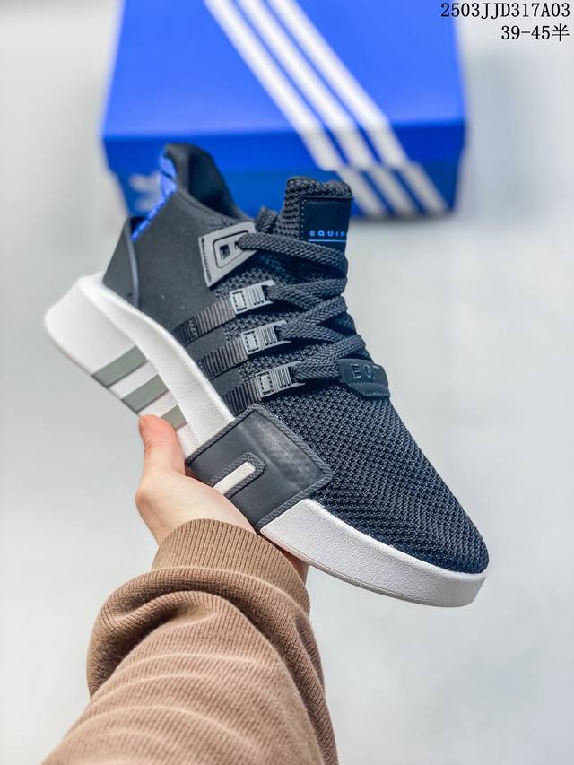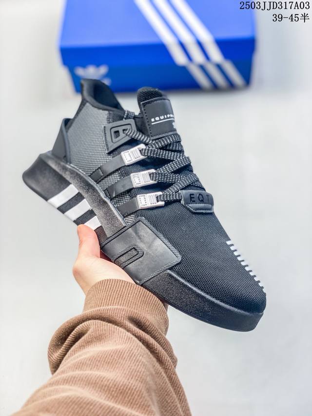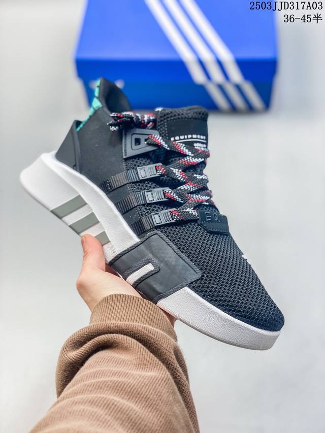 阿迪达斯Adidas Eqt Bask Adv支撑者系列 针织轻便复古慢跑鞋 #将醒目篮球气质融入复古90年代Equipment 型格,结构分明,全新针织鞋面贴合足部,含热塑性聚氨酯橡胶(Tpu)后跟饰片,中底缀三条纹细节,沿袭Adidas传统。官方原鞋楦模,丽新中底,原厂Pu大底
