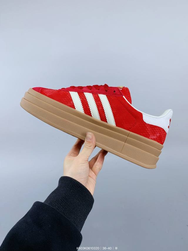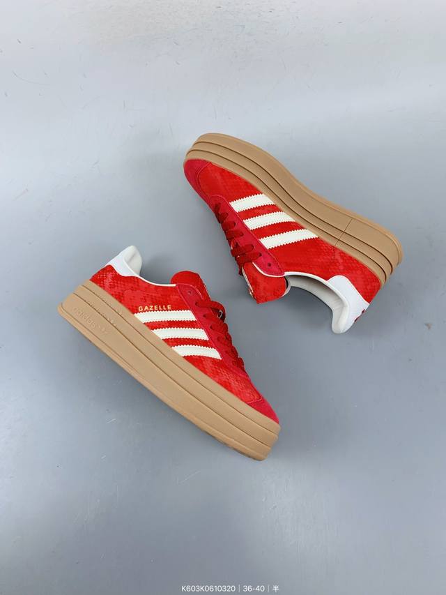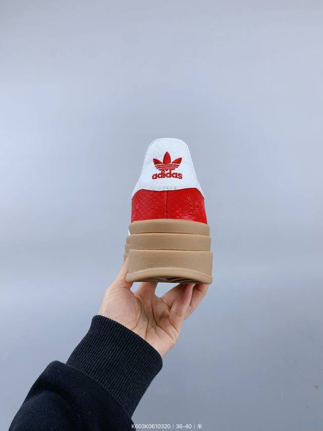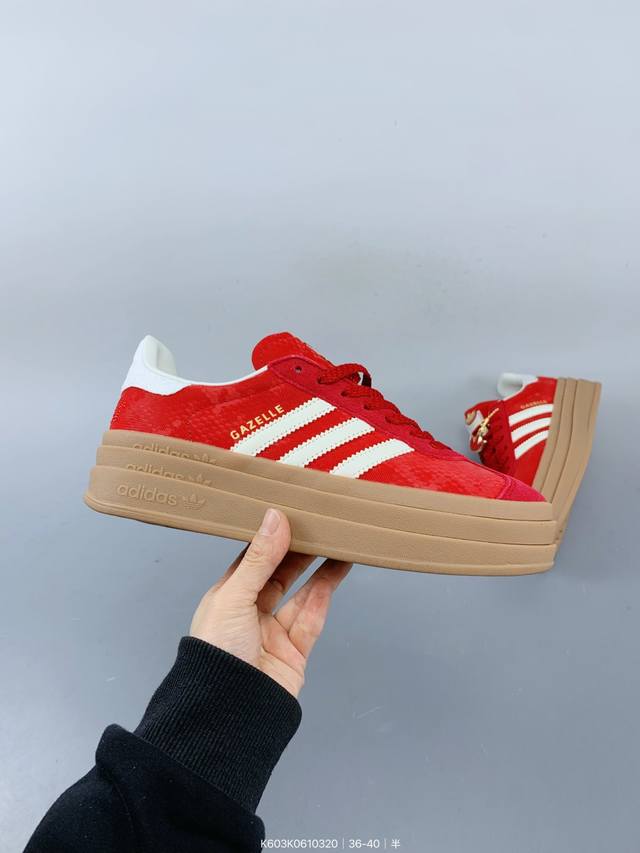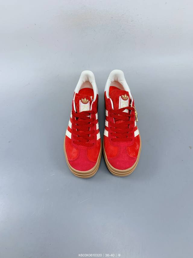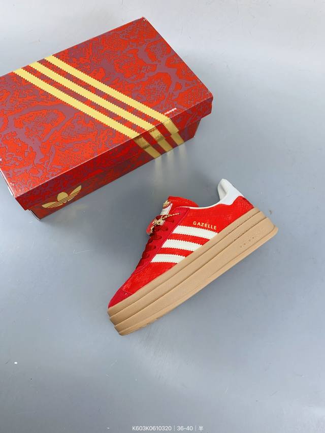 adidas Originals Gazelle Bold Cny 蛇年限定 高热新品 "Year Ofsnake" 时尚百搭 防滑耐磨 低帮 阿迪达斯 厚底松糕板鞋以红色为主 鞋头采用深红色麂皮呈现整体鞋面辅以蛇纹是最大的亮点标志性的三道杠区域采用皮面打造 后跟处带有‘發’字样 撞色的搭配使得新年氛围感拉满