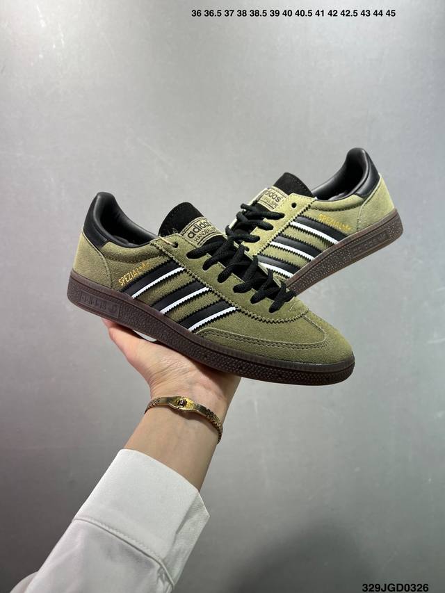 / 160 公司级 Adidas Originals Handball Spzl 手球运动员系列百搭休闲运动板鞋“翻毛奶油黄生胶底”Gy7407 尺码:36-45(