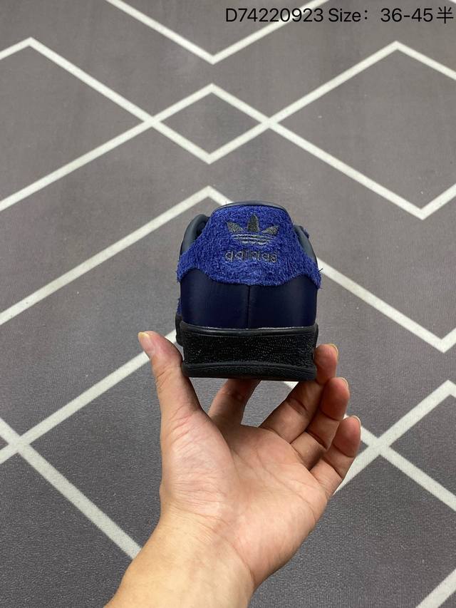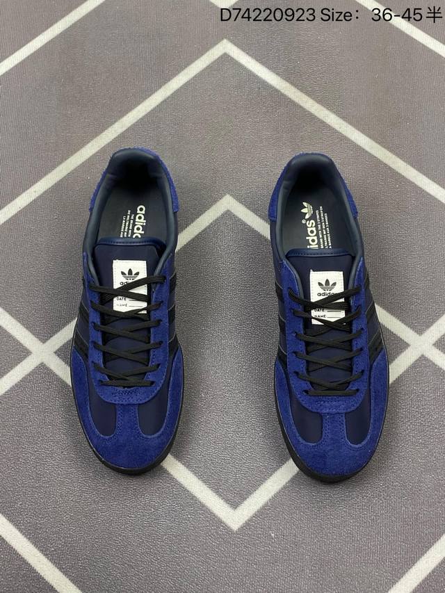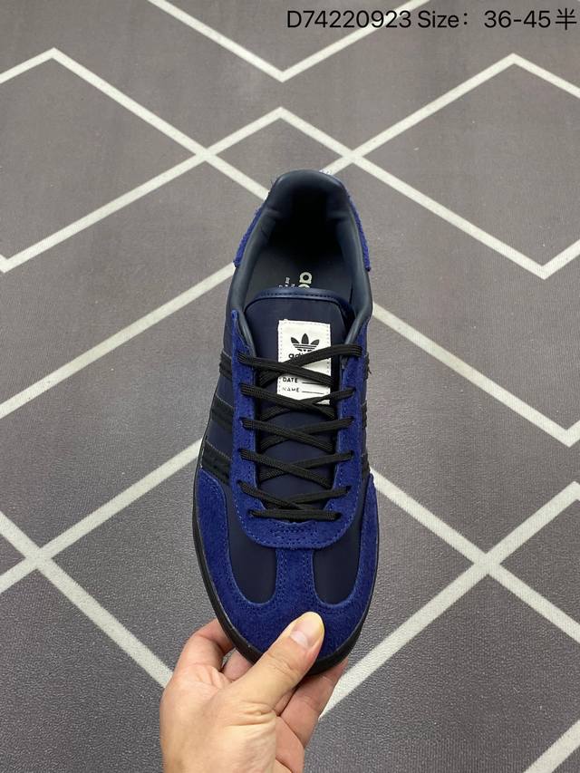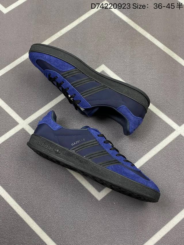 阿迪达斯 Adidas Originals Gazelle Indoor 复古三叶草防滑透明橡胶板鞋经典运动鞋。这款经典鞋,忠于原版设计,缀撞色三条纹和鞋跟饰片。采用柔软皮革与织物拼接鞋面,穿着舒适,搭配生胶外底,风格复古。用不同材料制作这款修长复古的从1970年代开始就很受欢迎的网球鞋。Gazelle Indoor拥有包边更宽的T字型鞋头,Gazelle开始将皮革材质引入训练鞋设计之中,从而减轻了运动员双脚的负担。当年这一改动也是为了更好的保护运动员的前掌,以及Gucci X Adidas