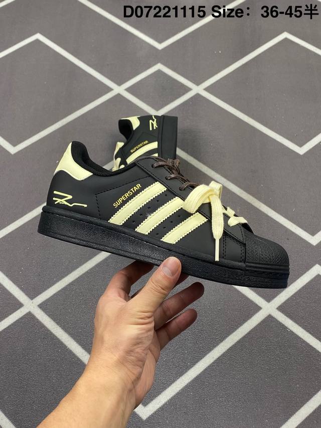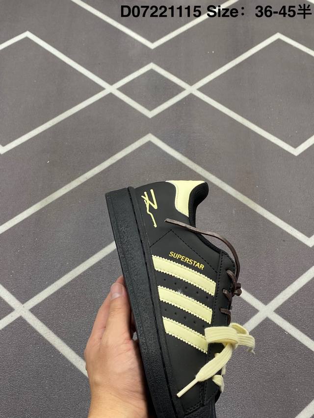 Adidas/阿迪达斯 贝壳头系列 原楦开发版型,采用硬质粒面牛剖革鞋面材质,2020改良全包围鞋垫,正确2020版鞋底模具及扇贝头盖片阿迪达斯/三叶草Adidas Originals Superstar 经典贝壳头系列低帮百搭休闲运动板鞋 Eg4959