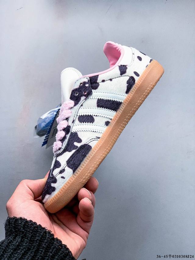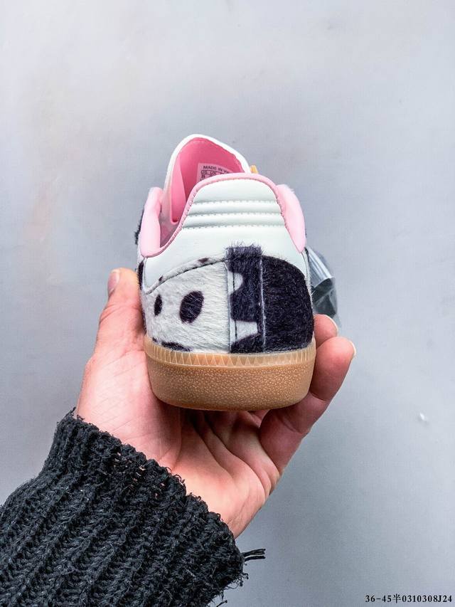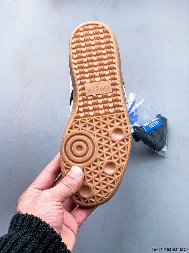 Adidas 近70年的经典Samba Og 修长的鞋楦,略微尖尖的鞋头,翻毛皮的鞋头拼接,这些我们都看得到的元素正是Samba的设计灵魂