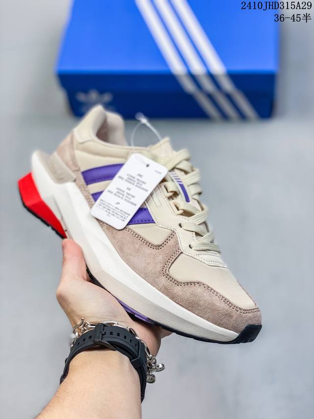 170 Adidas Pt 网布织物绒面革 时尚复古运动 减震 低帮 生活休闲鞋 男女同款 灰棕紫 10Jhd315A29