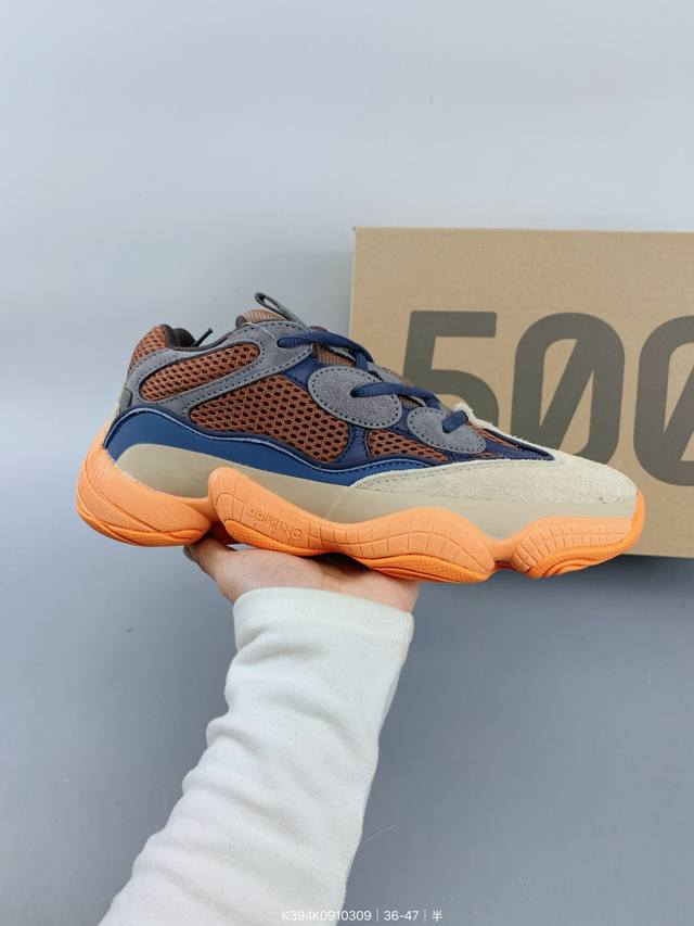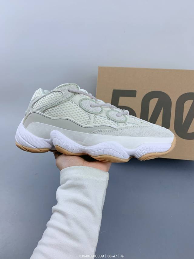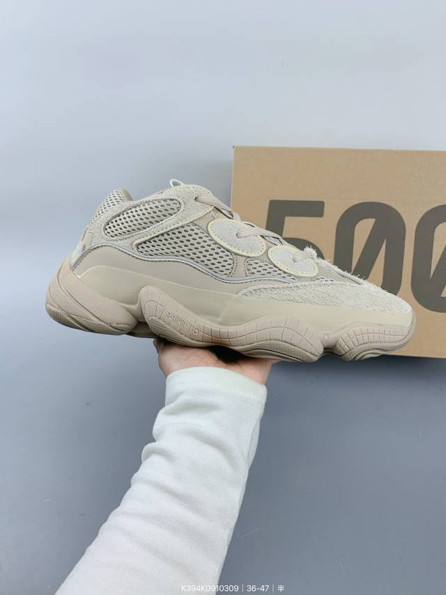 阿迪达斯Adidas Yeezy Desert Rat 椰子500 原纸板原档案原楦头开模打造,鞋面采用皮革、磨砂小牛皮、麂皮和网眼三种材质打造,以复古气息 十足的 Adiprene 中底取代早前的人气Boost缓震设计,以及带来更好的舒适体验!