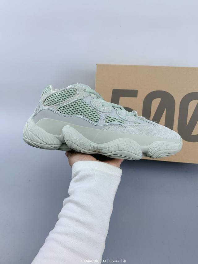 :180 阿迪达斯Adidas Yeezy Desert Rat 椰子500 原纸板原档案原楦头开模打造,鞋面采用皮革、磨砂小牛皮、麂皮和网眼三种材质打造,以