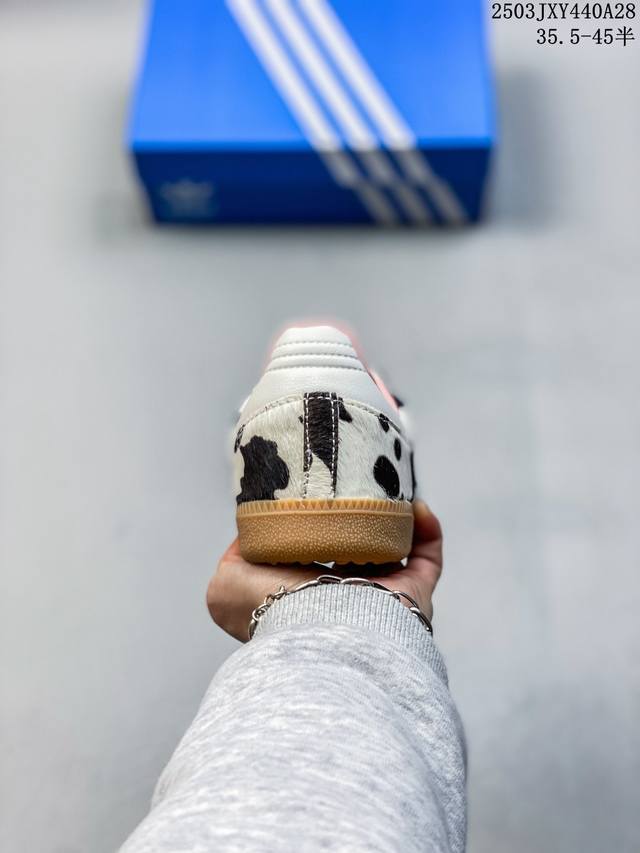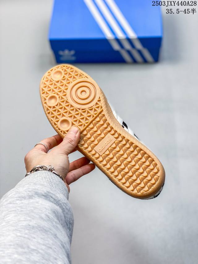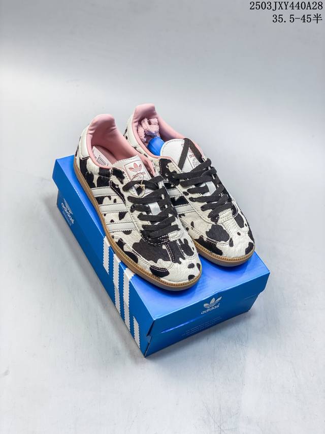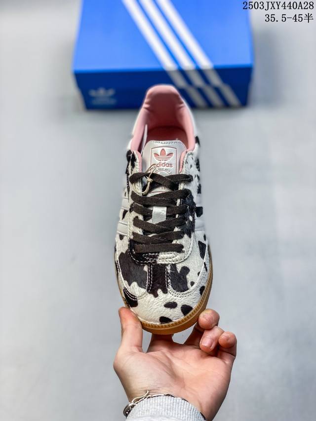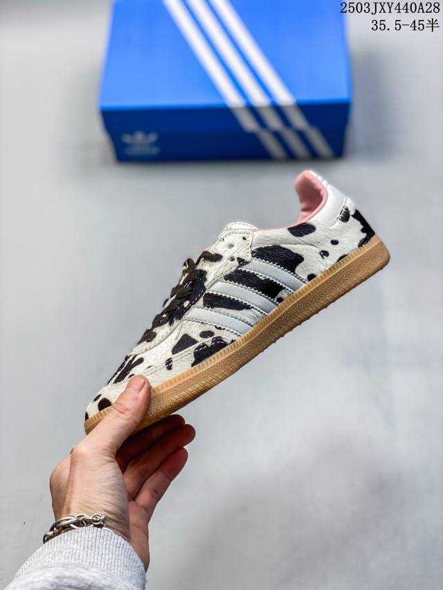 【真标】阿迪达斯 德训鞋 Adidas Originals Samba Og Shoes 经典运动鞋小白鞋「T头鞋」豹纹男女鞋 彰显休闲摩登风情的时尚经典鞋。它诞生于50年代的足球场,随后走向街头和秀场。Adidas Samba自成一格,堪称时尚标杆。这款Samba Og经典鞋,采用柔软织物鞋面,搭配橡胶外底,舒适休闲。含锯齿三条纹和别致T形鞋头,致敬Samba的传统设计。缀低调烫金细节,更添型格。忠于本源,热爱不老。 常规版型 系带设计 织物鞋面 织物衬里 橡胶外底。