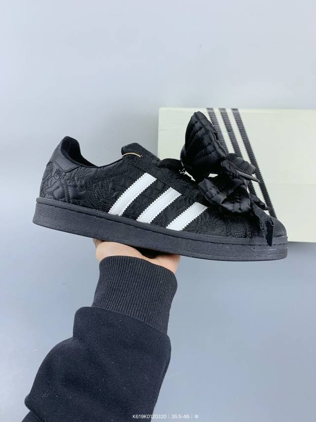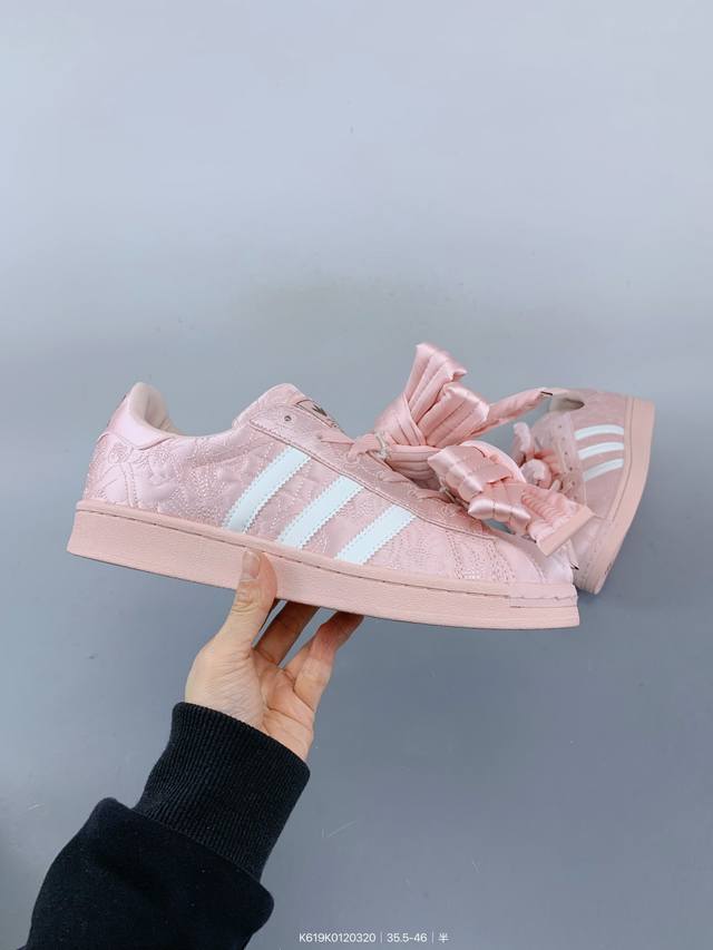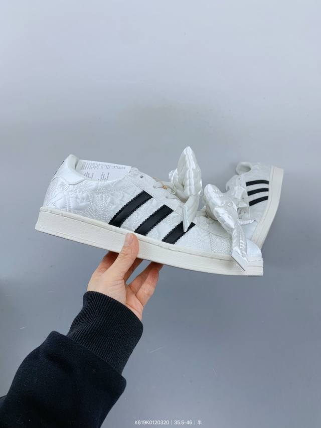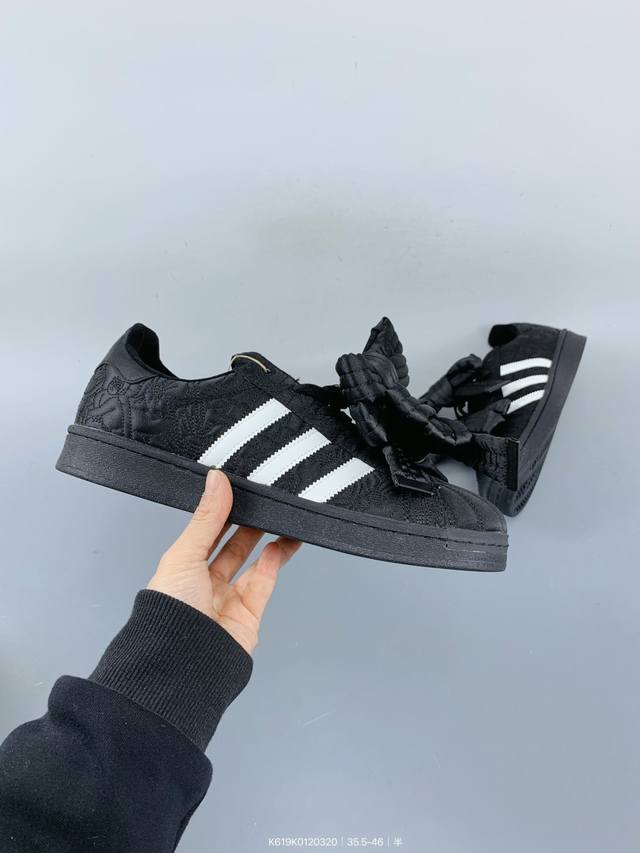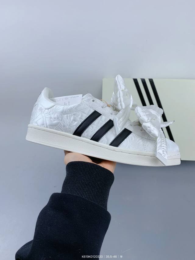 :210 公司级Caroline Hu X Adidas Originals Superstar W 潮流 时尚 防滑减震 低帮 阿迪达斯板鞋 搭配大朵蝴蝶结