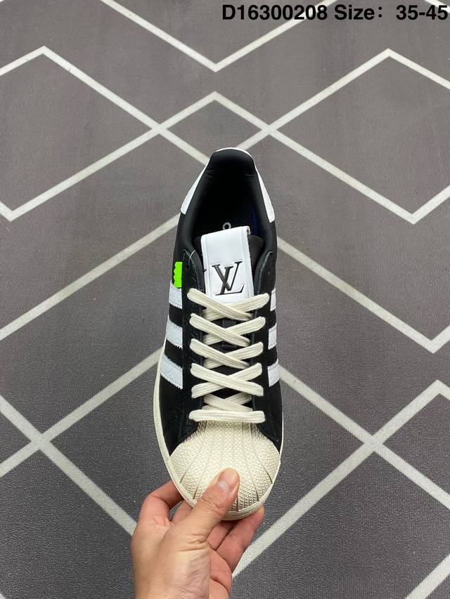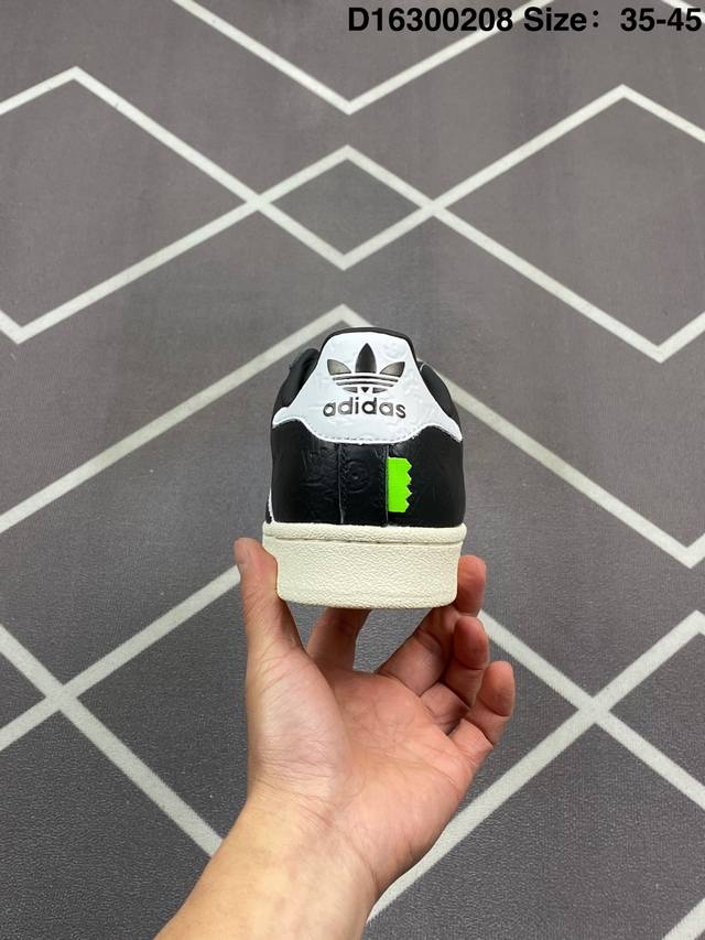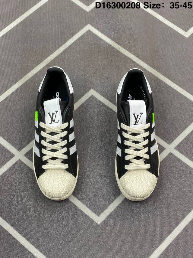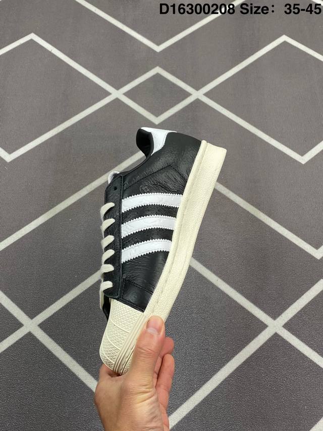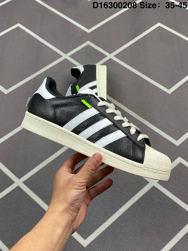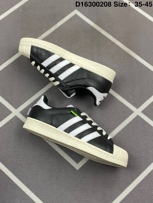阿迪达斯 Adidas Superstar 三叶草经典贝壳头系列 金属扣绑带 新款休闲板鞋潮流男女士运动鞋 。鞋面柔软皮革材质 标志性的贝壳鞋头,锯齿三条纹,简约的线条。就连版型和比例,都在向1982年的鞋款致敬。可谓“形神兼备”的复刻。无论在哪,无论去哪,你或许都需要这样一双既舒适又时尚的鞋。1970年问世于篮球场的Adidas Superstar,集舒适与时尚于一身。这款经典鞋,缀低调图案,灵感源自公共交通地图。设计简约,旨在伴你出行。心动不如行动,系好鞋带,出发吧。