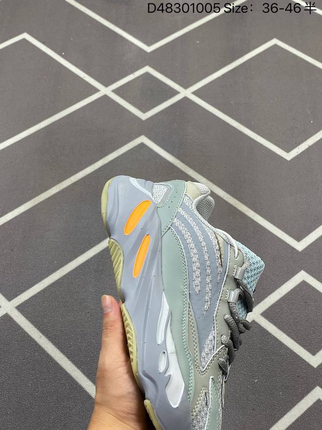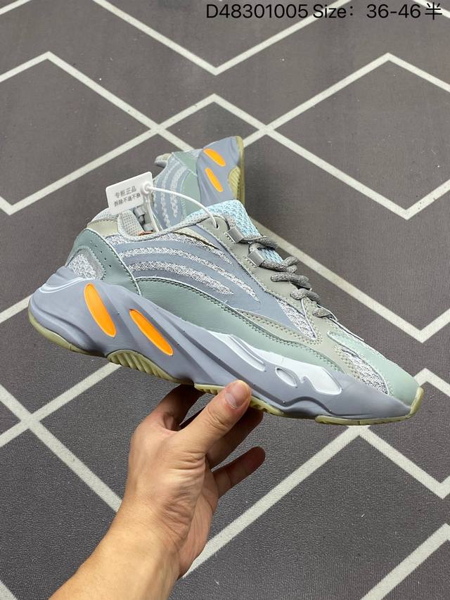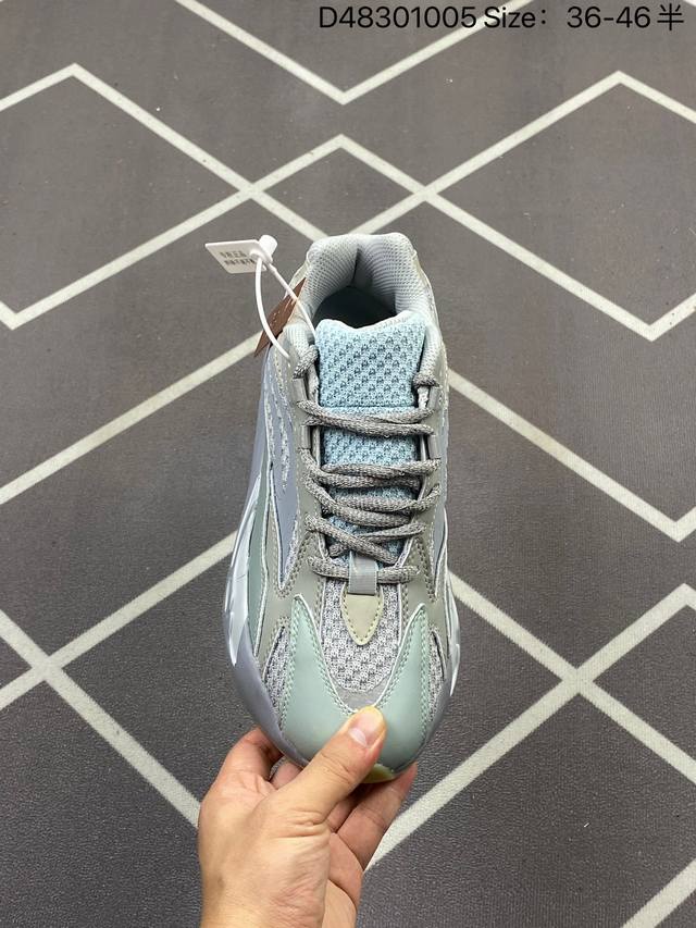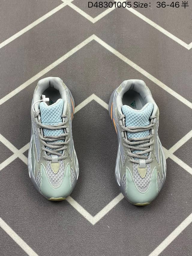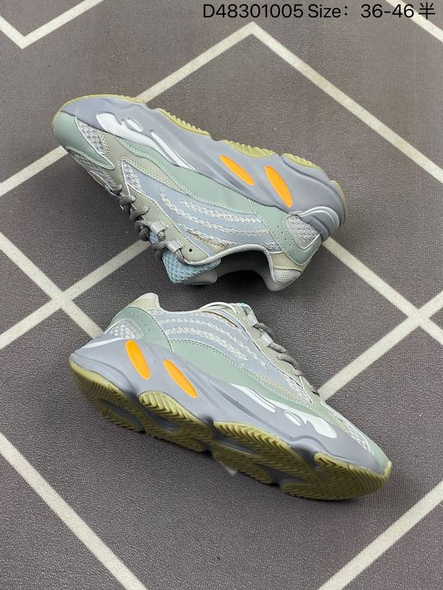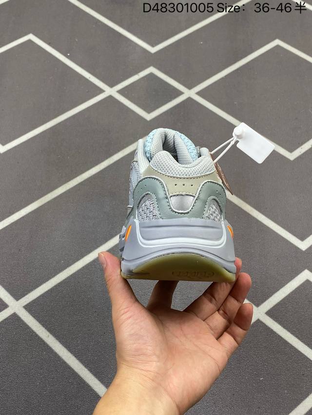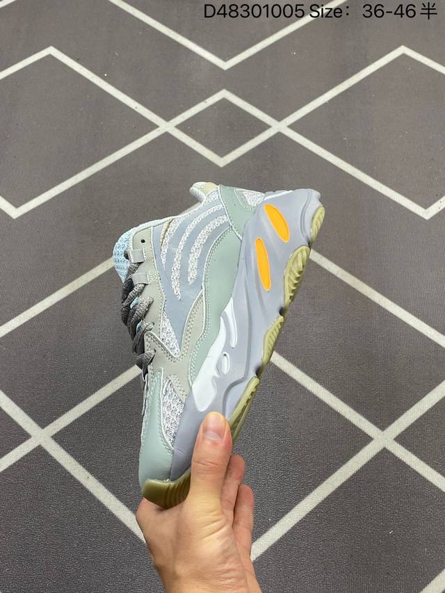 阿迪达斯 Adidas Yeezy 700 V3 异形椰子700男女老爹鞋跑步鞋 运动鞋,Yeezy 700 V3 的外形和技术含量有着革新一般的变化,Yeezy 700 V3 鞋面上整体将单丝工程网线组成的网眼面料作为轮廓基础,再在其上以 Rpu 覆面加固。内靴结构提供贴身贴合感,而加固橡胶鞋头则增加了耐用性。这款运动鞋采用轻质 Eva 中底封装在灰白色 Pu 笼中,由人字形橡胶外底支撑。