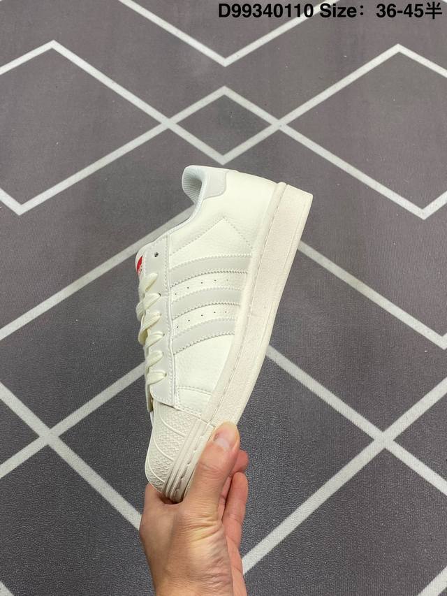 Adidas/阿迪达斯 男女鞋,升级原楦开发版型,采用粒面移膜牛剖革鞋面材质,2020改良全包围鞋垫,正确2020版鞋底模具及扇贝头盖片阿迪达斯/三叶草Adidas Originals Superstar 经典贝壳头系列低帮百搭休闲运动板鞋“ Bz2510