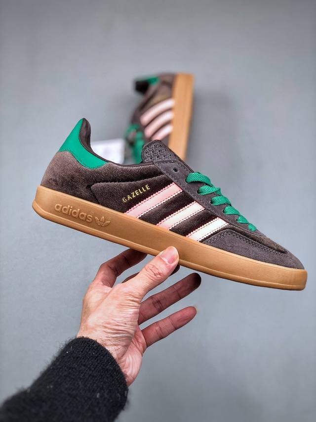 / 240支持放店 Adidas Originals Gazelle Indoor 羚羊内训系列低帮复古百搭休闲运动德训风板鞋“棕粉绿” 货号:Ji2714 尺码: