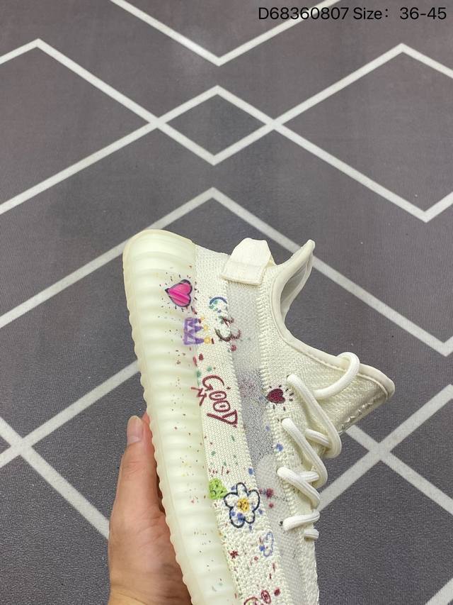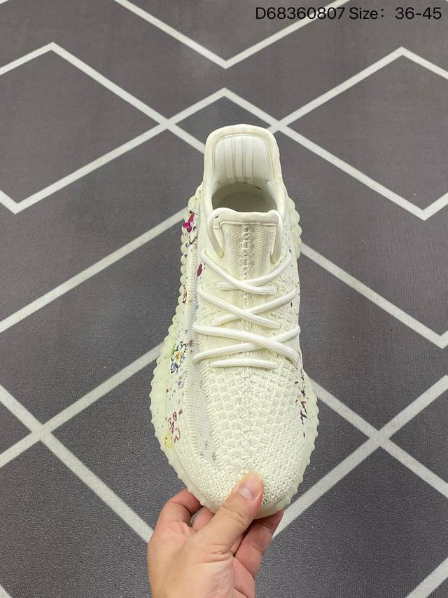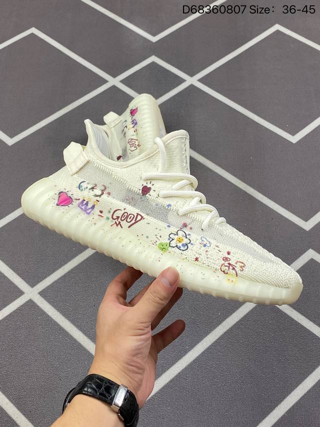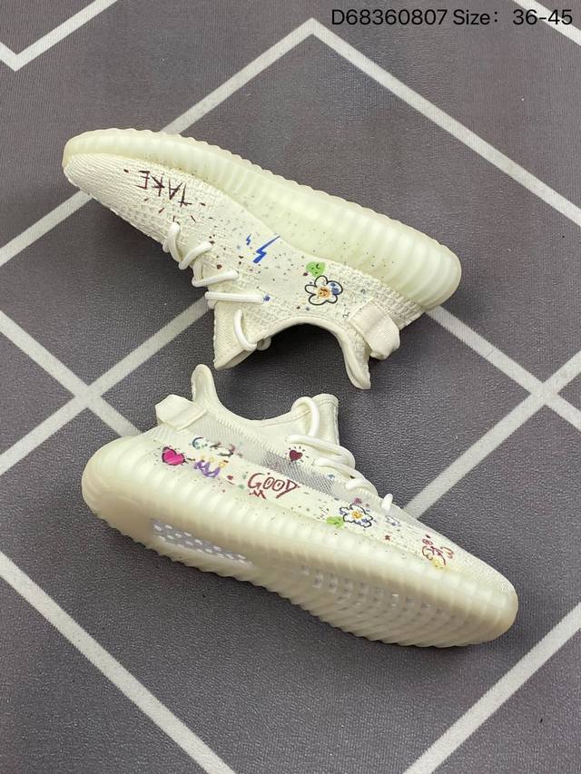 定制阿迪达斯Adidas Yeezy Boost 350V2 椰子 德国进口网织机台织面 镂空呼吸网纱材质 侃爷限定 百搭轻便爆米花中底休闲运动慢跑鞋×