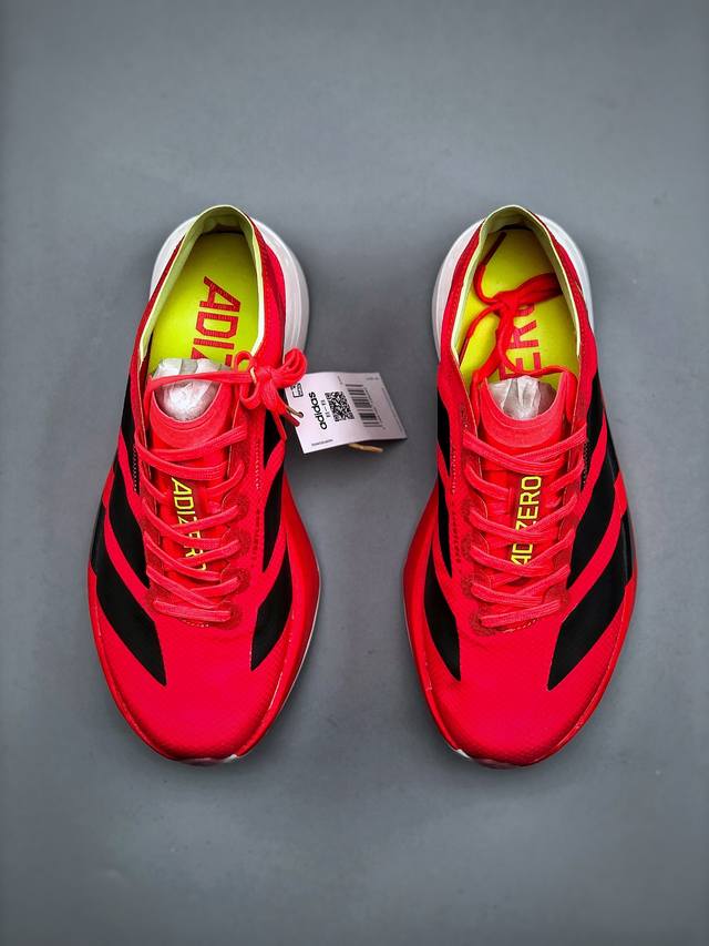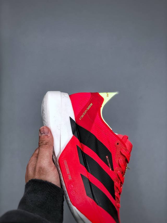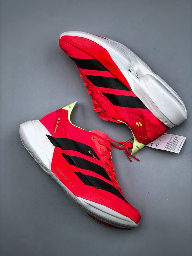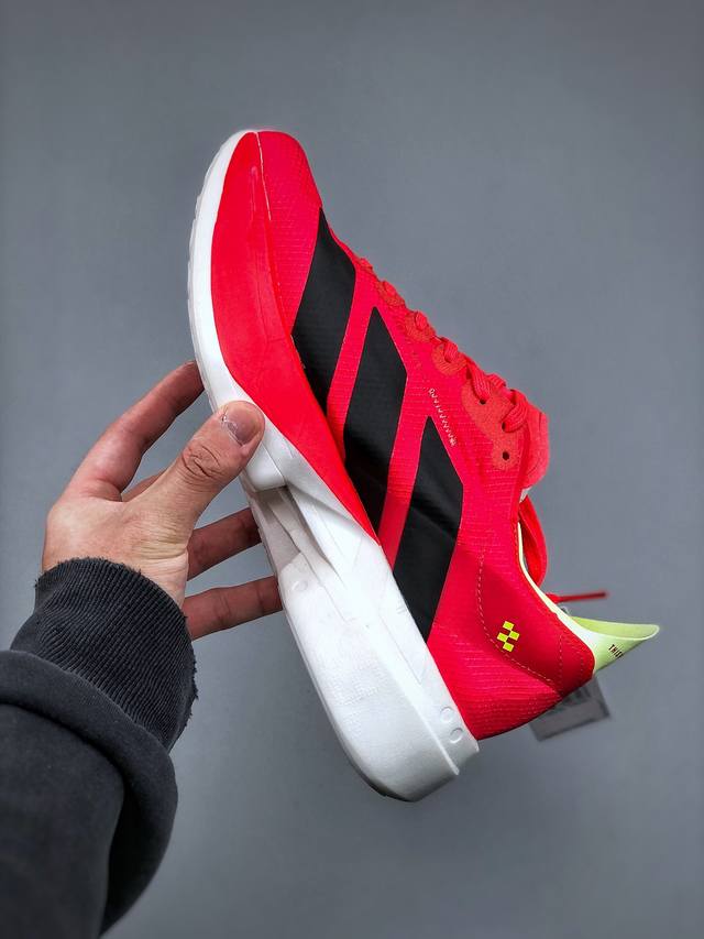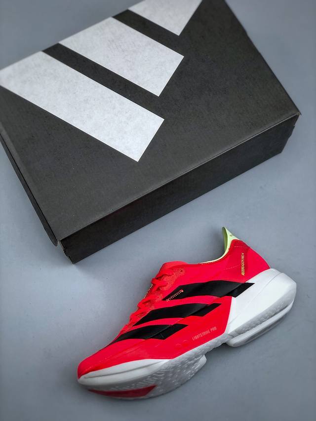 公司级!Adidas Adizero Adios Pro 4马拉松飞线贾卡轻质透气休闲运动跑步鞋 采用双层透气网纱 Flywire动态飞线绑缚鞋面材质 内置Zo