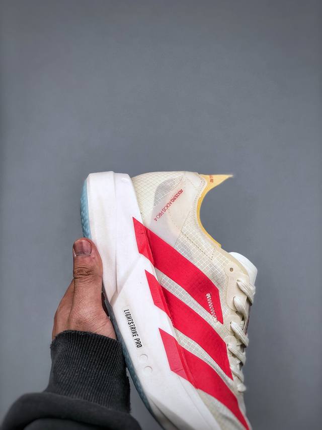 / 300支持放店 Adidas Adizero Adios Pro 4 轻盈跑鞋耐磨减震专业跑步鞋 。冲向目标,一路向前,不断挑战和突破自我。无论是平时训练还是马