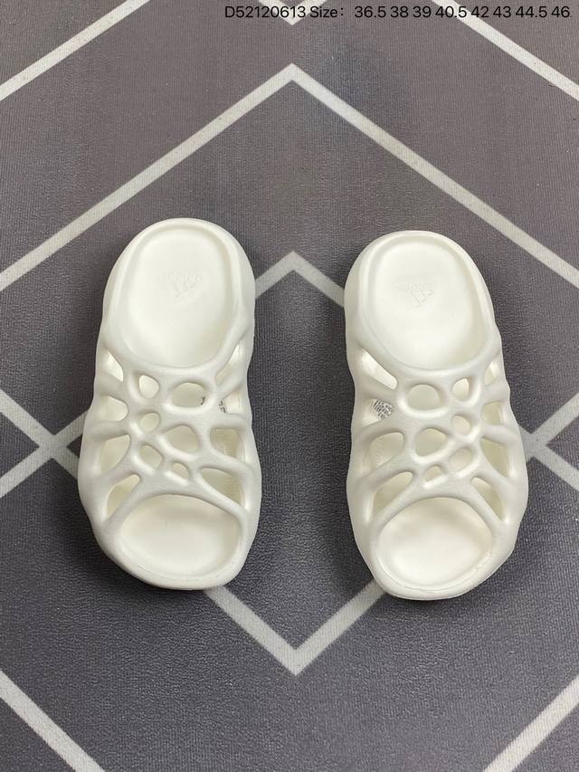 Adidas/阿迪达斯 原数据楦型开发Md配比Eva泡棉式原色一体成形鞋模全新鞋型,侃爷再度联乘Kanye West X Adidas Yeezy 450 Slide"White"450异型火山骨架系列椰子户外风格沙滩涉水百搭运动穿搭拖鞋“石膏白 Gz9861