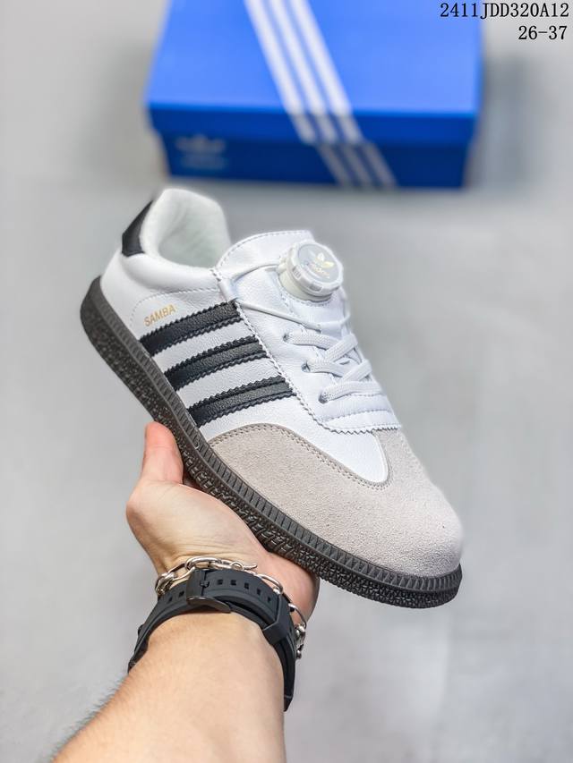 Adidas 德训鞋旋转纽扣童鞋 阿迪达斯德训鞋复古休闲运动板鞋旋转纽扣童鞋 松紧带+旋转纽扣 26-37 11Jdd320A12