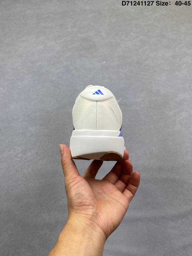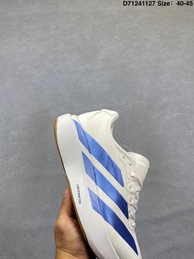 Adidas 阿迪达斯 升级原楦原纸版开发,采用轻质单向弹性梭织鞋面材质,中底搭载Lightstrike高密度发泡+前掌单块Lightstrike pro避震科