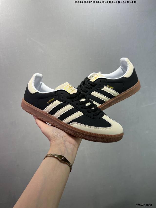Adidas 阿迪达斯 男女鞋半码制,采用磨砂牛剖革鞋面材质,外置橡胶大底带你回味最原始的永远经典,阿迪达斯 三叶草Adidas Originals Samba Og 桑巴舞系列绅士德训足球风百搭低帮休闲运动板鞋“芝麻黄黑生胶底 Ie5836 类型:男女鞋 码数:36 36.5 37 38 38.5 39 40 40.5 41 42 42.5 43 44 45 编码:329Wd1030