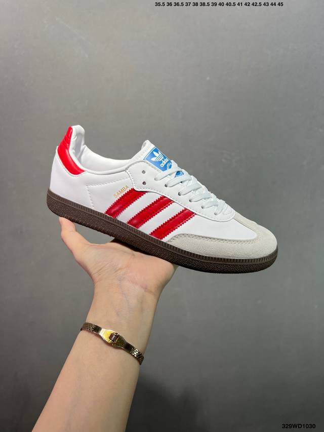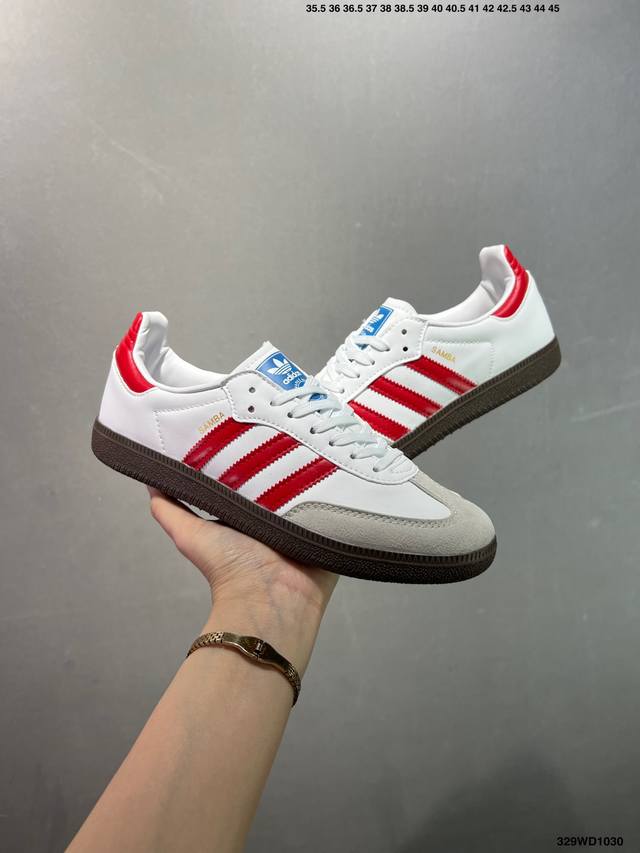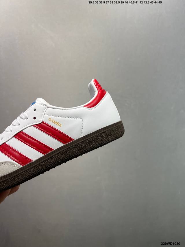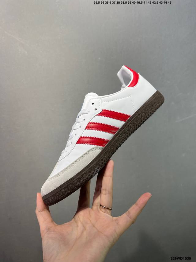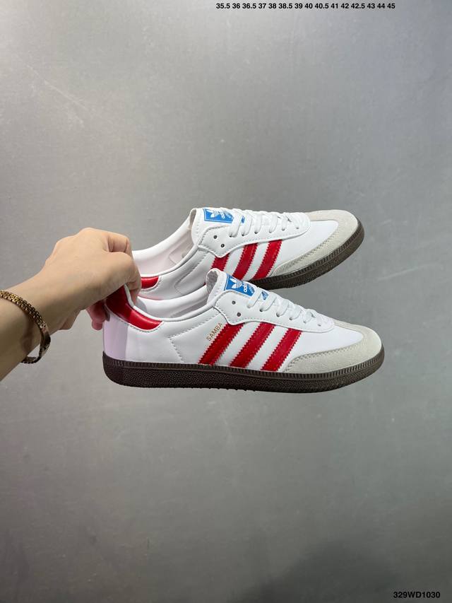 / Adidas 阿迪达斯 男女鞋半码制,采用磨砂牛剖革鞋面材质,外置橡胶大底带你回味最原始的永远经典,阿迪达斯 三叶草Adidas Originals Samba