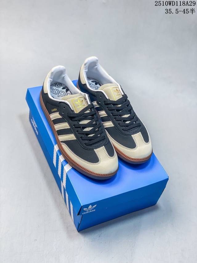 Adidas 阿迪达斯 男女鞋半码制,采用磨砂牛剖革鞋面材质,外置橡胶大底带你回味最原始的永远经典,阿迪达斯 三叶草Adidas Originals Samba Og 桑巴舞系列绅士德训足球风百搭低帮休闲运动板鞋“芝麻黄黑生胶底 Ie5836 类型:男女鞋 码数:36 36.5 37 38 38.5 39 40 40.5 41 42 42.5 43 44 45 编码:329Wd1030 10Wd118A29