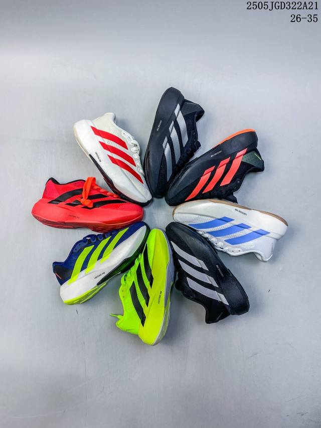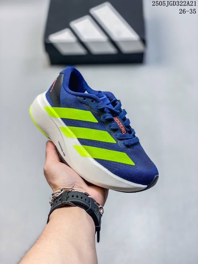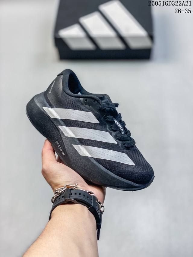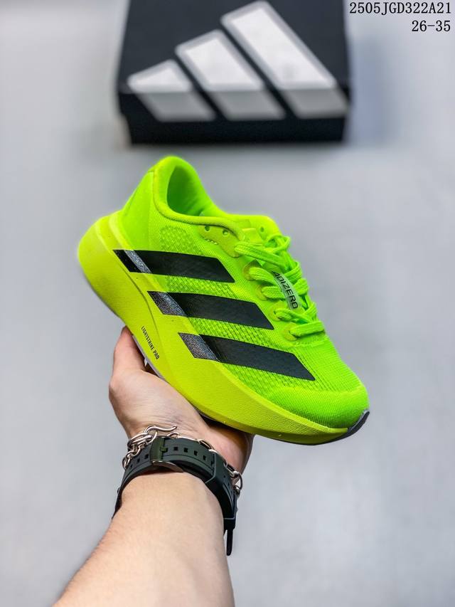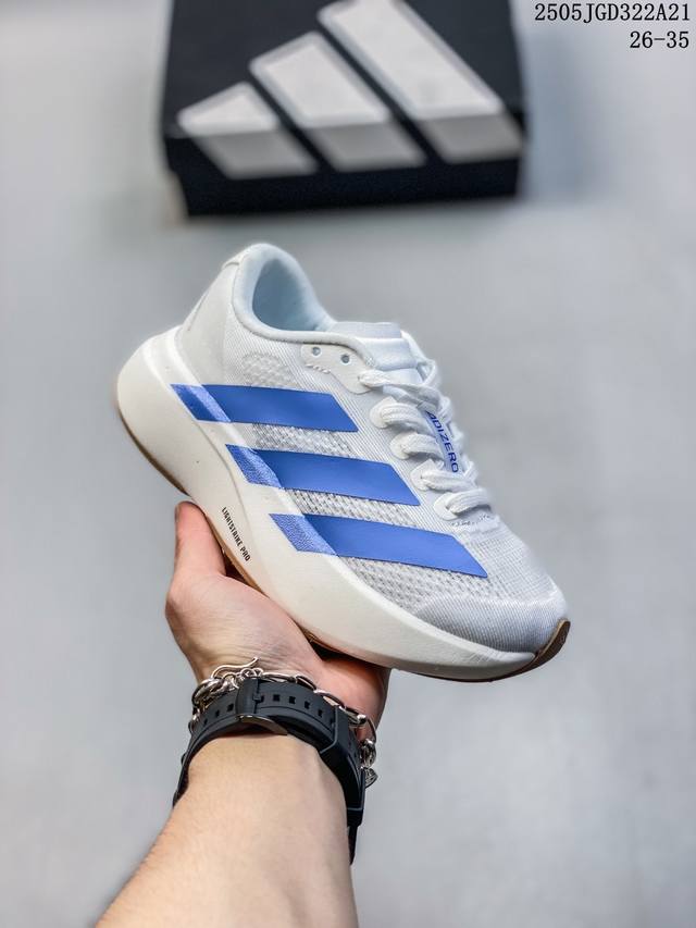 adidas 阿迪达斯 童鞋 男女鞋真标半码制 升级原楦原纸版开发 采用轻质单向弹性梭织鞋面材质 中底搭载Lightstrike高密度发泡+前掌单块Lightstrike pro避震科技 外搭马牌橡胶橡胶防滑底片全新极简设计语言 阿迪达斯Adidas Adizero Adios pro Evo 4 Triple White 零度平安进化版4系列低帮轻便透气竞速休闲运动慢跑鞋