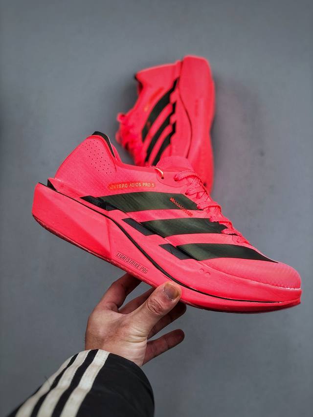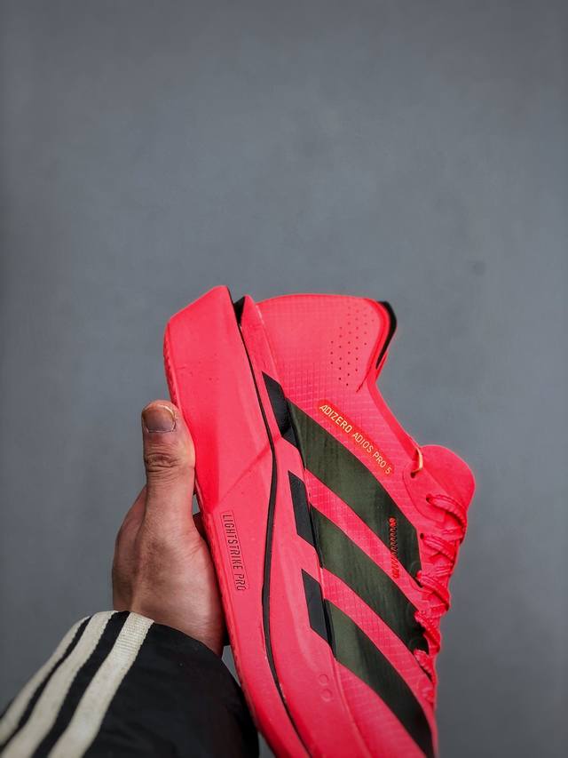 B Adidas Adizero Adios 5 M 阿迪超轻透气缓震跑鞋 全掌碳板 整体外观造型与Adizero Adios pro Evo 1非常相似 中底
