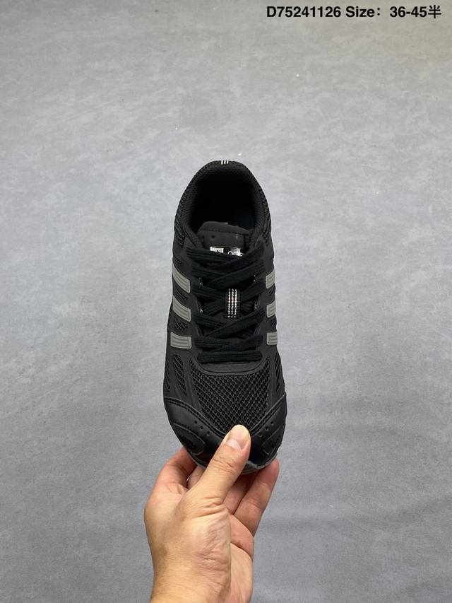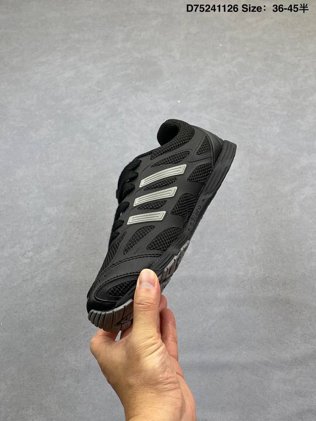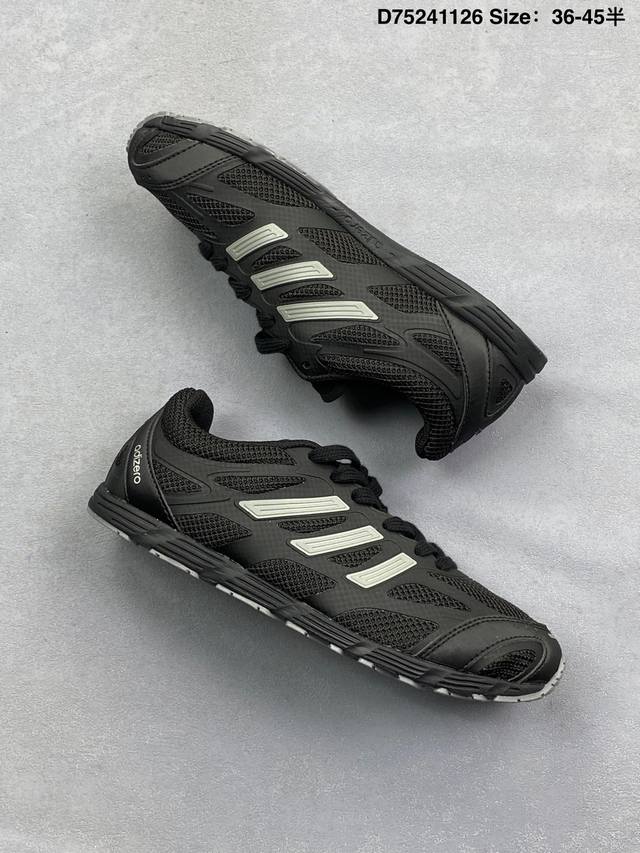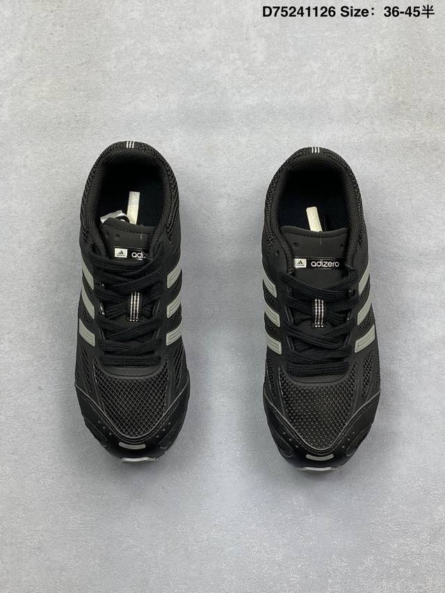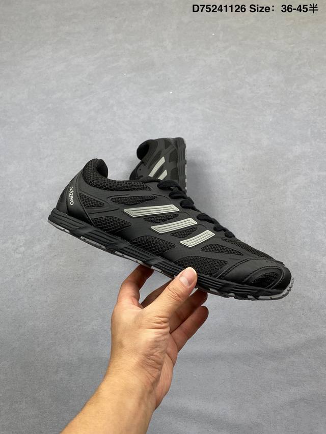 Adidas Adizero Adios 5 M 马拉松竞速专业跑鞋 DDD Celermesh针织网面非常轻薄 纤维间的缝隙很大 可以保证跑步时的透气、排汗效果 鞋舌直接与两侧的内衬和鞋底连接在一起 在跑步过程中不会被鞋舌的左右移动所困扰 在标准鞋带孔的基础上再拓宽一组鞋带孔 适合不同脚型的需求 突破性 Energyrods 技术,有助于跑者实现更好的成绩 中底独特的Lightstrike pro泡棉材质 微弹感觉在跑步过程中给予了良好的支撑体验 对于顶级精英和高水平进阶跑者来说 Adios pro是一