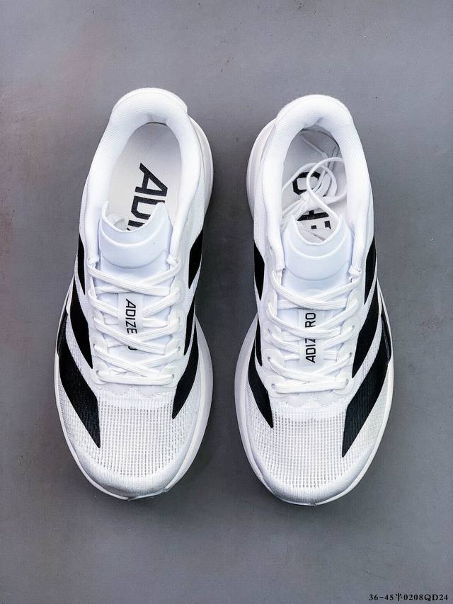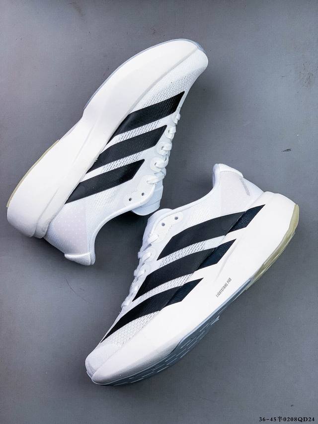 220 公司级!Adidas Adizero Adios Pro 4马拉松飞线贾卡轻质透气休闲运动跑步鞋 采用双层透气网纱 Flywire动态飞线绑缚鞋面材质