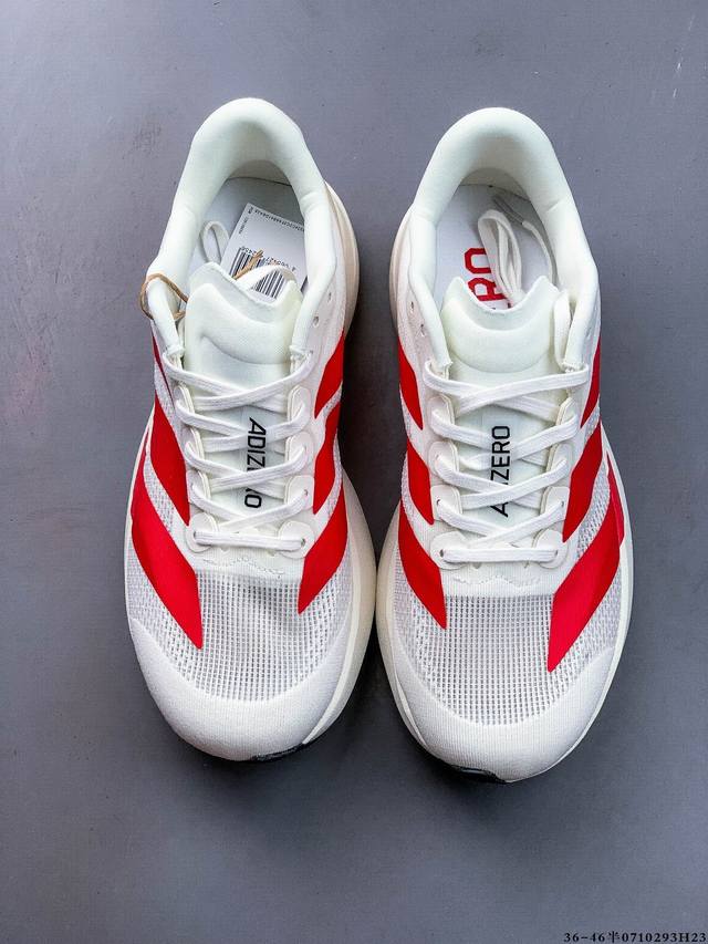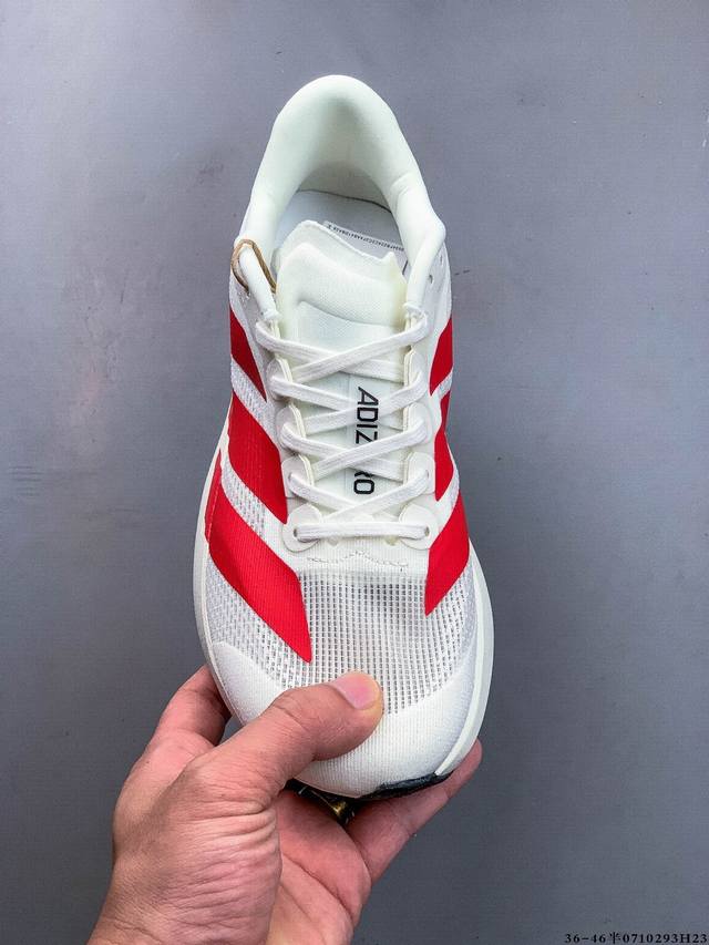 Adidas Adizero Evo Sl M马拉松飞线贾卡轻质透气休闲运动跑步鞋 采用双层透气网纱 Flywire动态飞线绑缚鞋面材质 内置Zoom小气垫装置