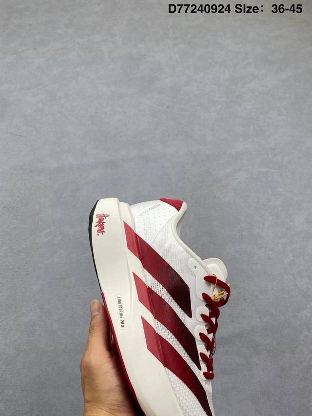 整体外观造型与Adizero Adios pro Evo 1非常相似 中底配置方面搭载全掌Lightstrike pro