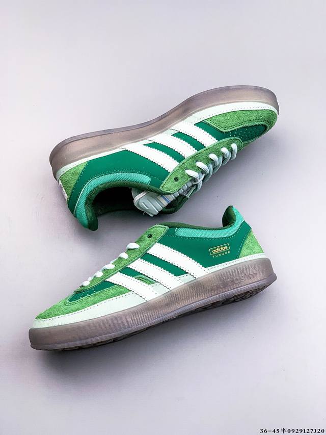 Adidas Bad X Bunny Gazelle Indoor 三叶草休闲防滑耐磨低帮板鞋 鞋头出色设计 塑就出众贴合感 稳固的后跟贴合足部曲线设计 软弹舒