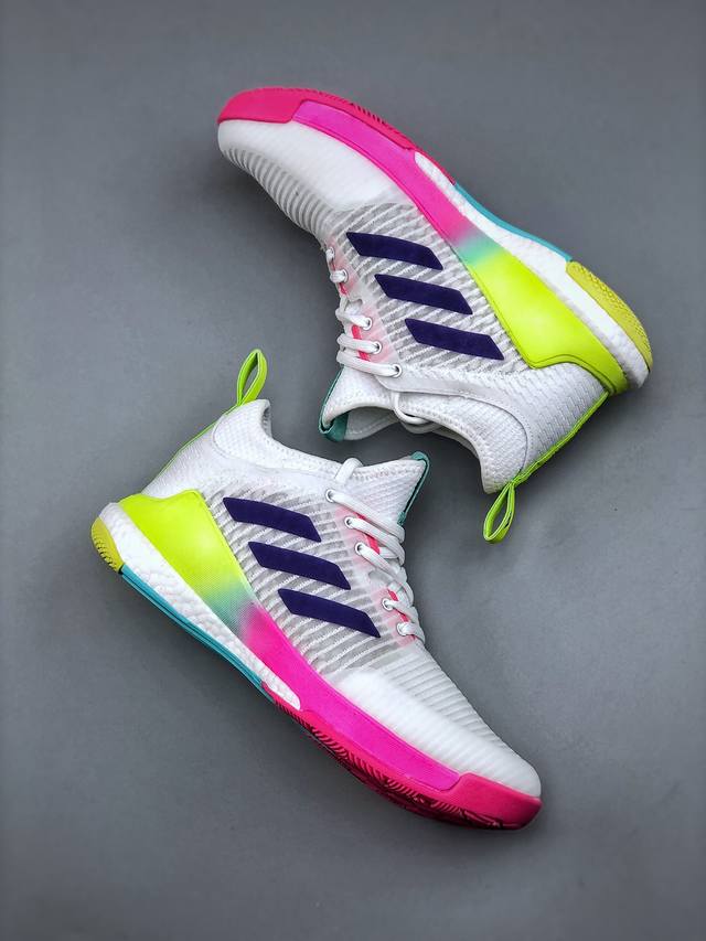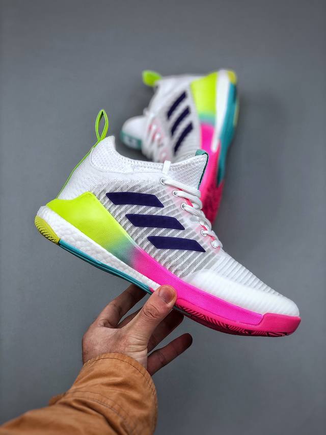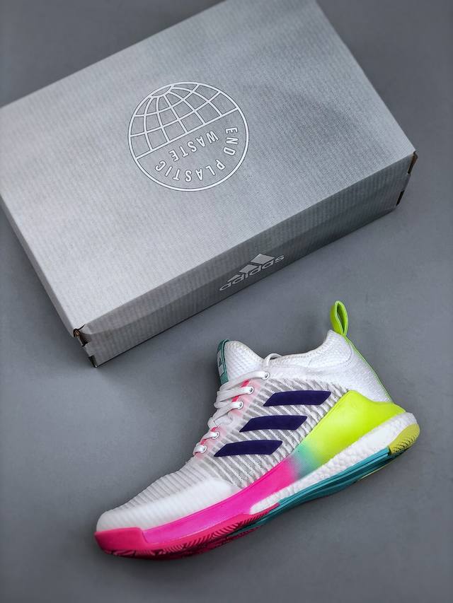 公司级Adidas Crazyflight Mid 减震防滑 中帮 阿迪达斯 训练鞋 推出可提升室内球场表现的跳高鞋 中切设计增加脚踝支撑...