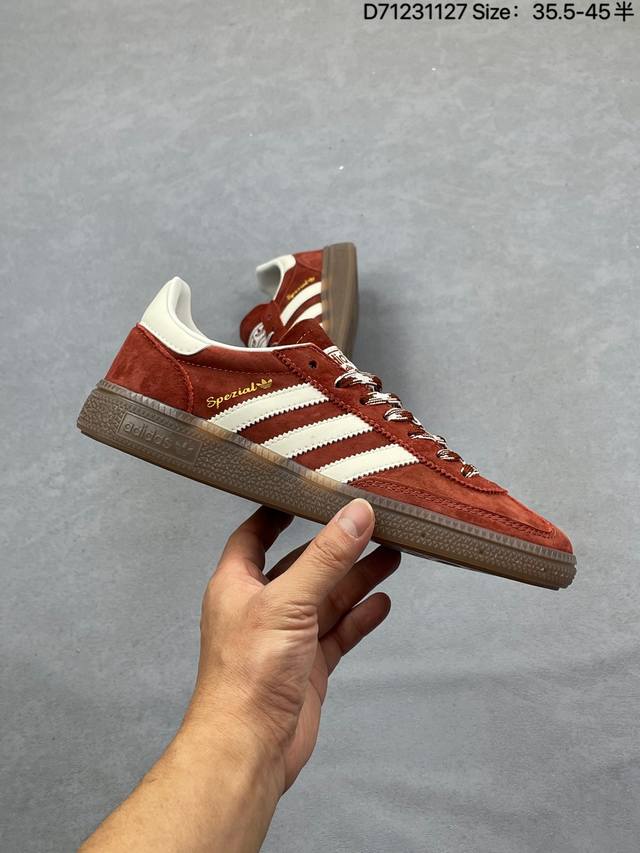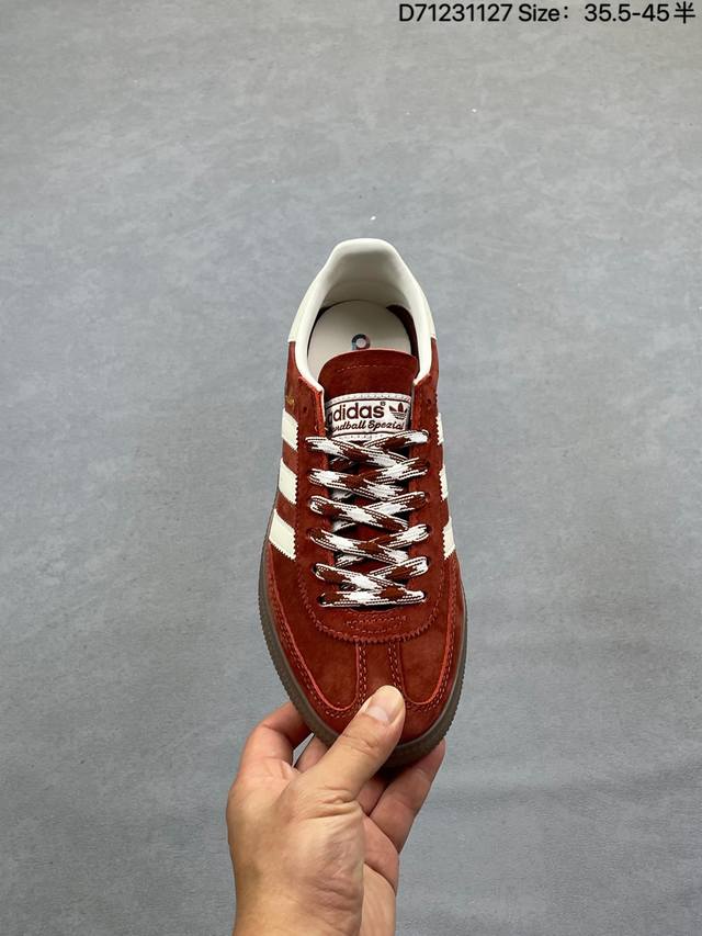 Adidas Handball Spezial 官方正确版本 阿迪达斯经典款 复古休闲板鞋 牛筋耐磨大底 承载青春情怀的板鞋 经典三条杠装饰鞋侧 品牌辨识度清晰