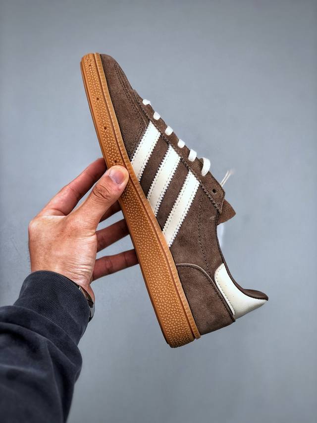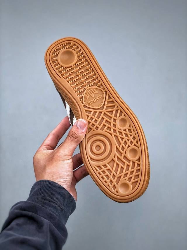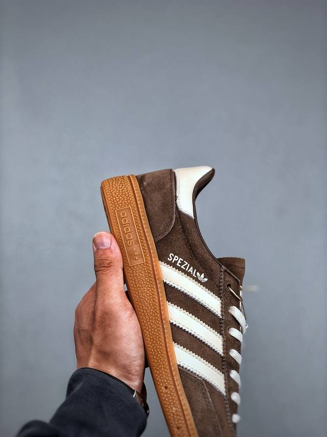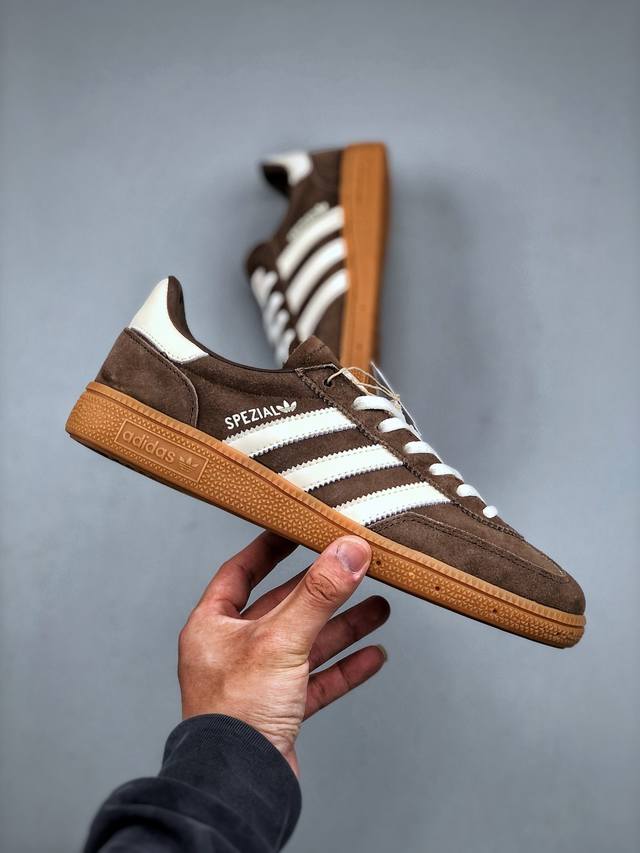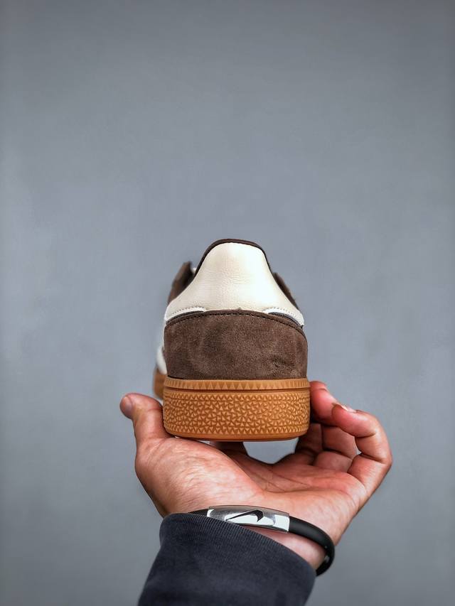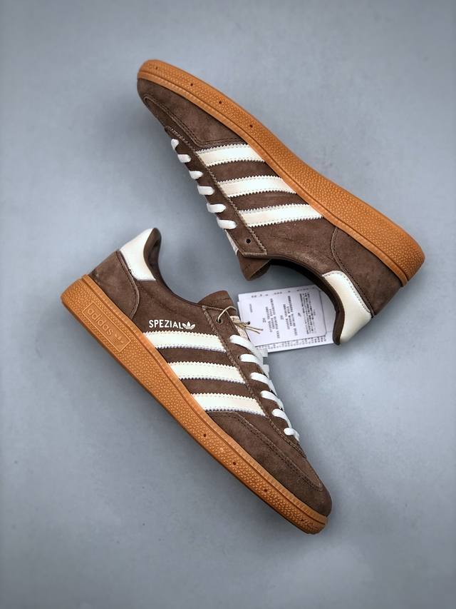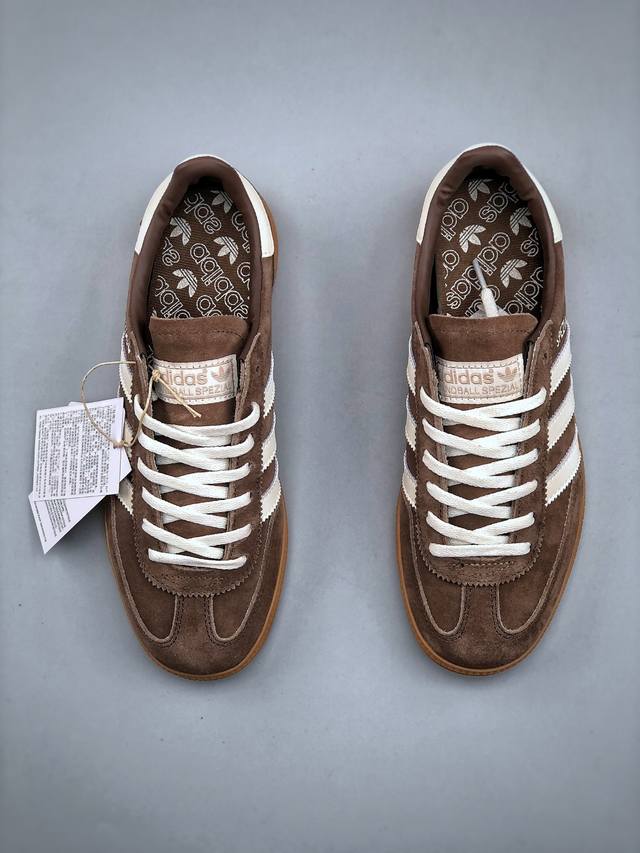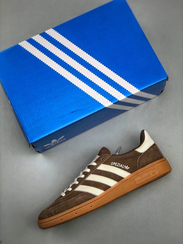 Adidas Handball Spezial 阿迪达斯经典款牛皮复古休闲板鞋 棕白生胶 If6490 原厂原档案开发出品 皮料切割干净无任何毛边 鞋型细节完美