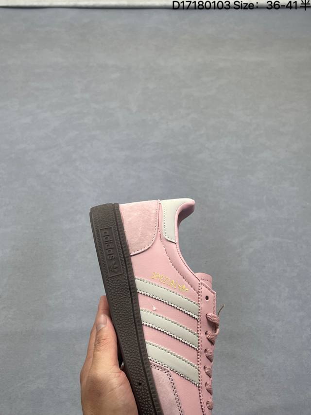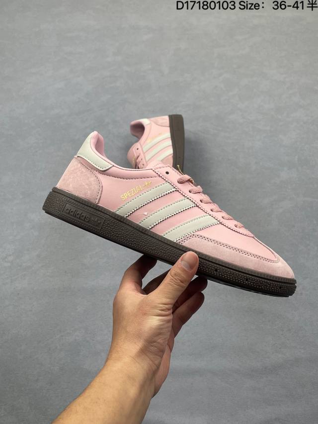 FFF Adidas Handball Spezial 阿迪达斯经典款 复古休闲板鞋 DDD 全鞋采用反毛皮制作 牛筋耐磨大底 DDD 承载青春情怀的板鞋 经典三条杠装饰鞋侧 DDD 品牌辨识度清晰 DDD 官方货号:Ji2646 DDD 尺码:36 36.5 37 38 38.5 39 40 40.5 41 DDD 编码:D17 103 DDD