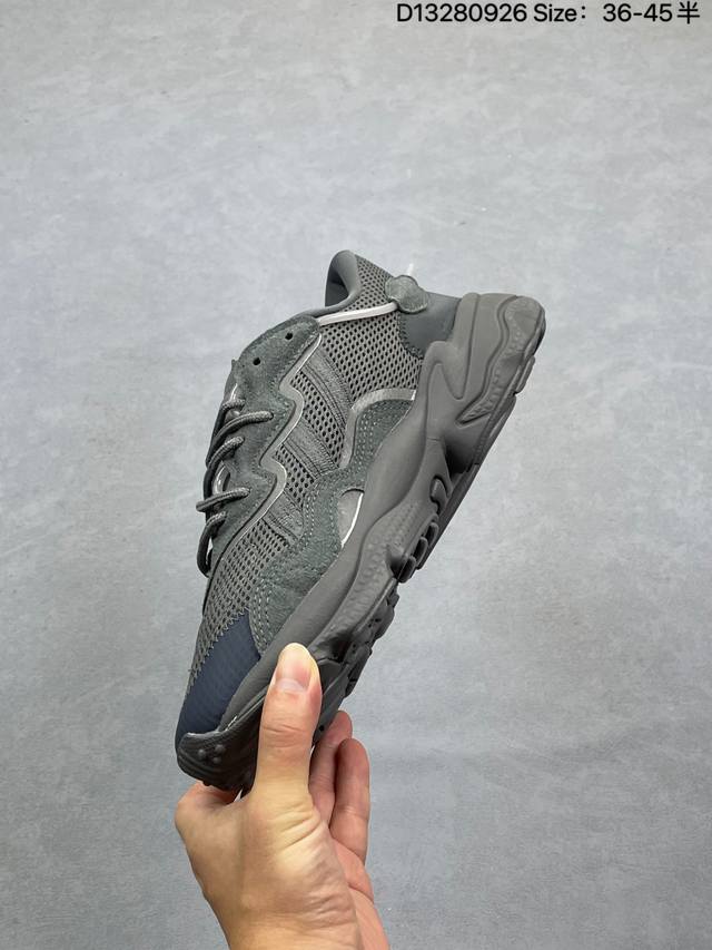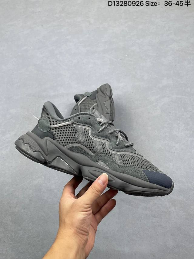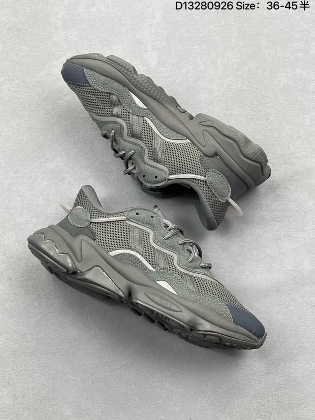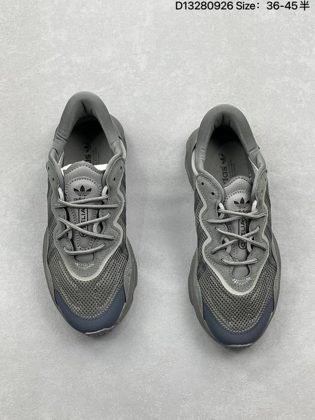 Adidas Originals阿迪达斯三叶草官方 Ozmillen Shoes 男女经典运动鞋 复古 拼色男女低帮缓震运动跑鞋 Oz米伦坏痞兔复古透气运动跑鞋。90年代末,Adidas Ozweego系列鞋款以清新造型和舒适质感吸引了众人的目光。如今焕新归来,为现代生活打造,以前卫视角重塑。采用金属饰面和双色配色,打造活力造型;搭配网眼布鞋面,随足而动。搭载Adiplus科技,更添未来感。书写属于你的未来。 常规版型 系带设计 网眼布鞋面配金属色饰面 Adiplus科技 织物衬里 橡胶外底