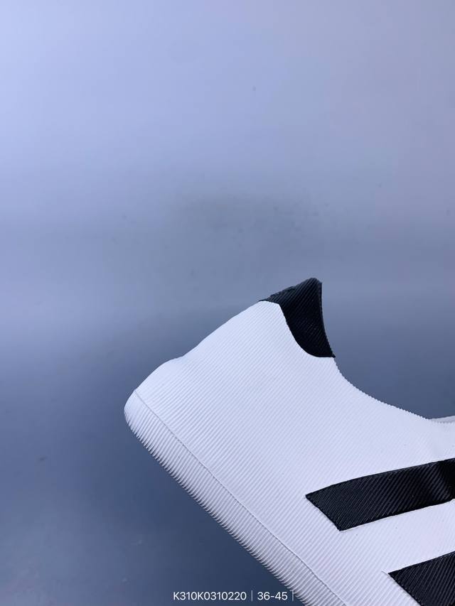 鞋子由 50% 的天然和可再生材料制成,其特点是采用由甘蔗衍生物制成的类似泡沫的结构。作为画龙点睛之笔,标志性的三条纹出现在鞋子的两侧,鞋跟贴片上饰有品牌标志性的三叶草压花