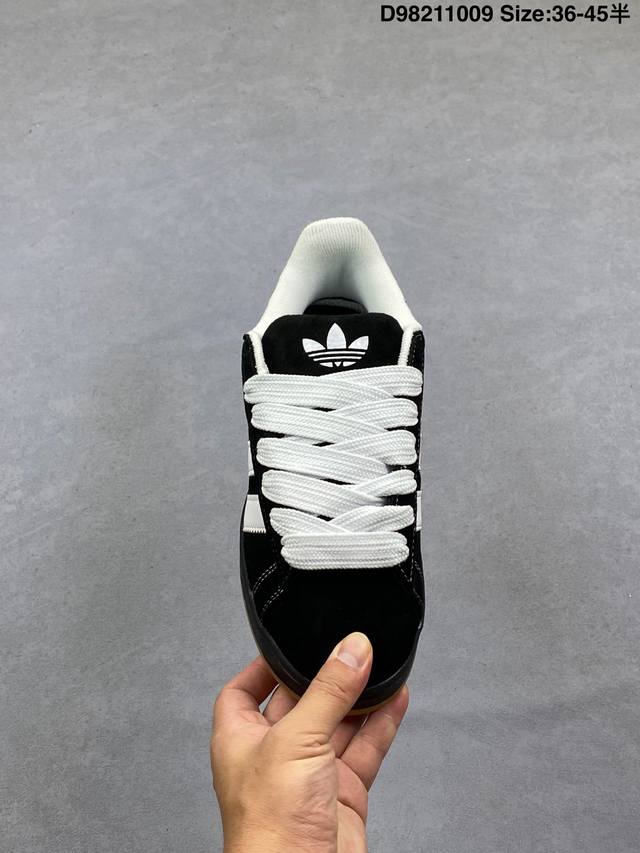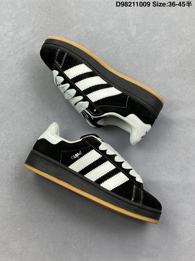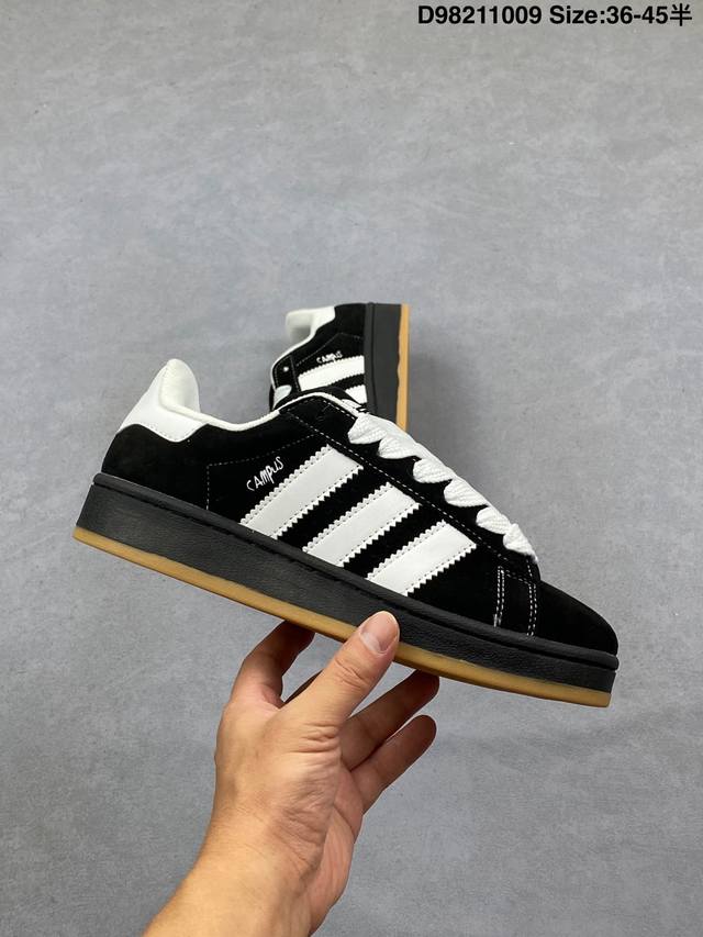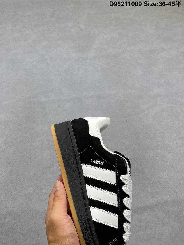 Adidas Originals Campus 00S 百搭单品 学院系列面包风经典复古低帮百搭休闲运动板鞋 这次 Originals 选择了以经典复古鞋型 Campus 为蓝本打造全新面包鞋 这款鞋型联名不断 冠希当年对它更是钟爱有加 论牌面丝毫不输贝壳头、Forum 等大热鞋型 这次 Campus 一改 80 年代的瘦长造型 鞋舌、鞋身、鞋底甚至细节都变大了 营造出千禧年前后流行的面包鞋宽大廓形 因此鞋名改为 Campus 00S 鞋身采用绒面皮料搭配白色常规皮革 质感上还是延续了经典 Campus
