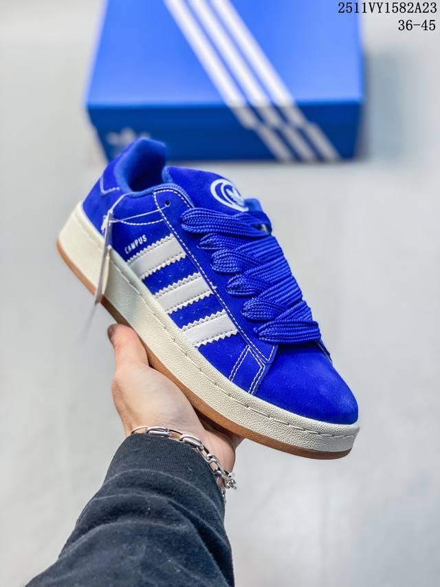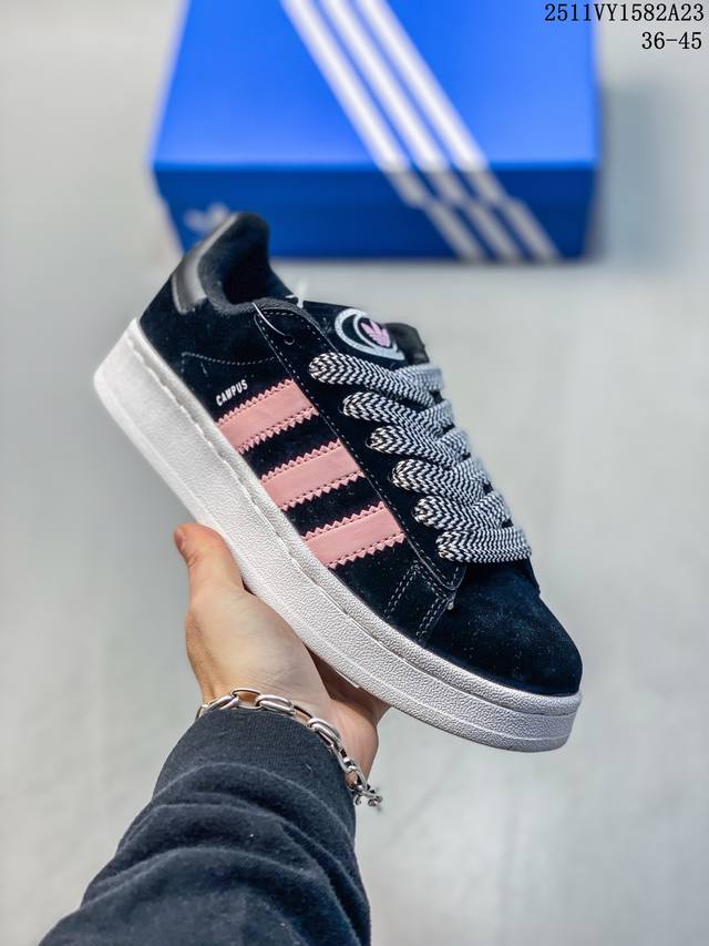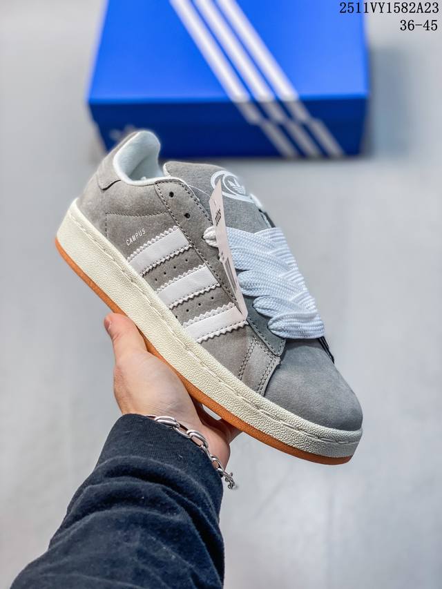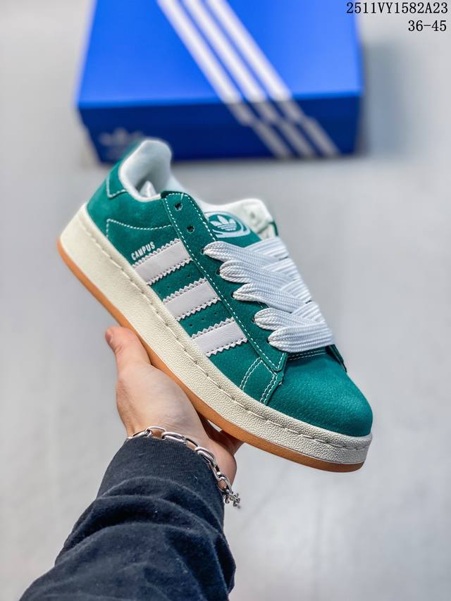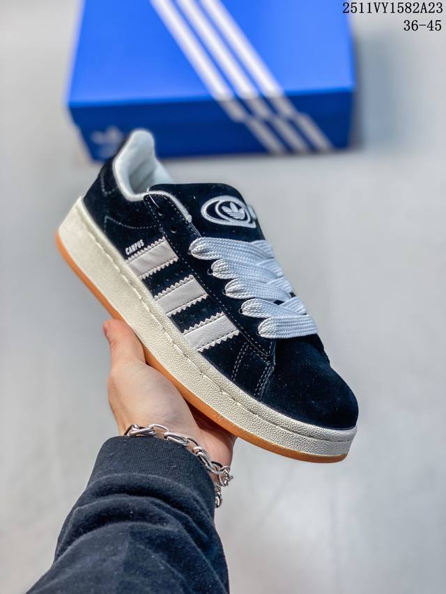 Adidas Originals Campus 00S 百搭单品 DDD 学院系列面包风经典复古低帮百搭休闲运动板鞋 这次 Originals 选择了以经典复古鞋型 Campus 为蓝本打造全新面包鞋 这款鞋型联名不断 冠希当年对它更是钟爱有加 论牌面丝毫不输贝壳头、Forum 等大热鞋型 这次 Campus 一改 80 年代的瘦长造型 鞋舌、鞋身、鞋底甚至细节都变大了 营造出千禧年前后流行的面包鞋宽大廓形 因此鞋名改为 Campus 00S 鞋身采用绒面皮料搭配白色常规皮革 质感上还是延续了经典 Cam