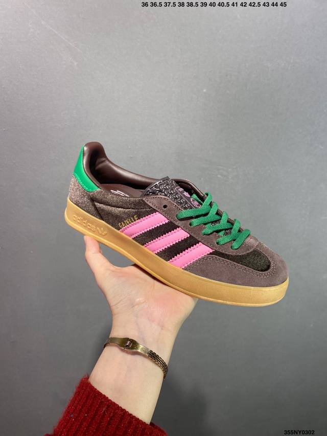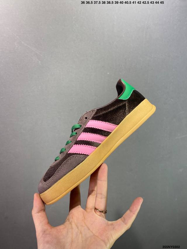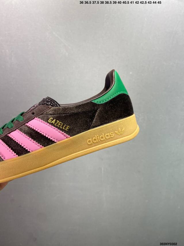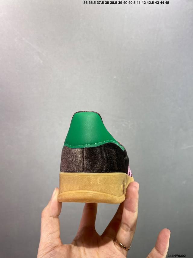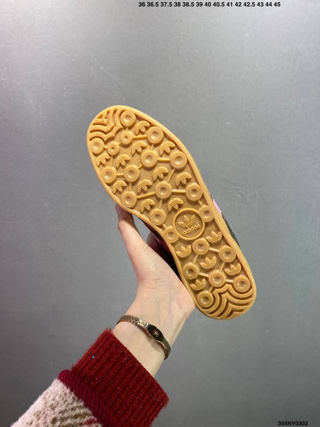 此款鞋延续了橡胶外底和经典款式的传统。优质绒面革鞋面和标志性的3条纹采用明亮的对比色,为久经考验的外观带来俏皮、富有表现力的饰面。