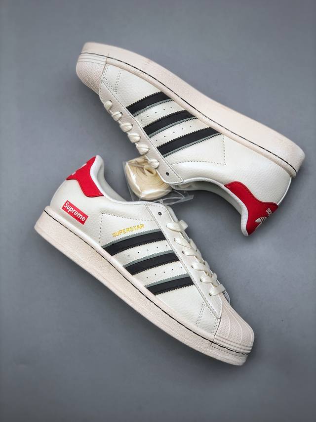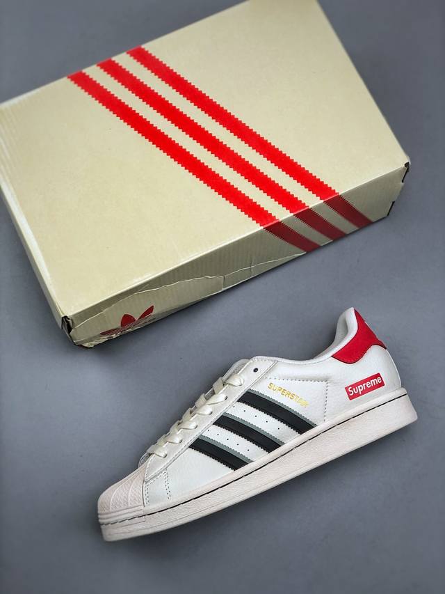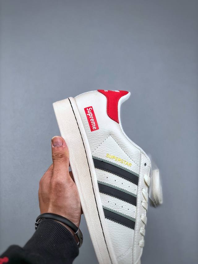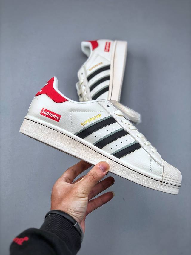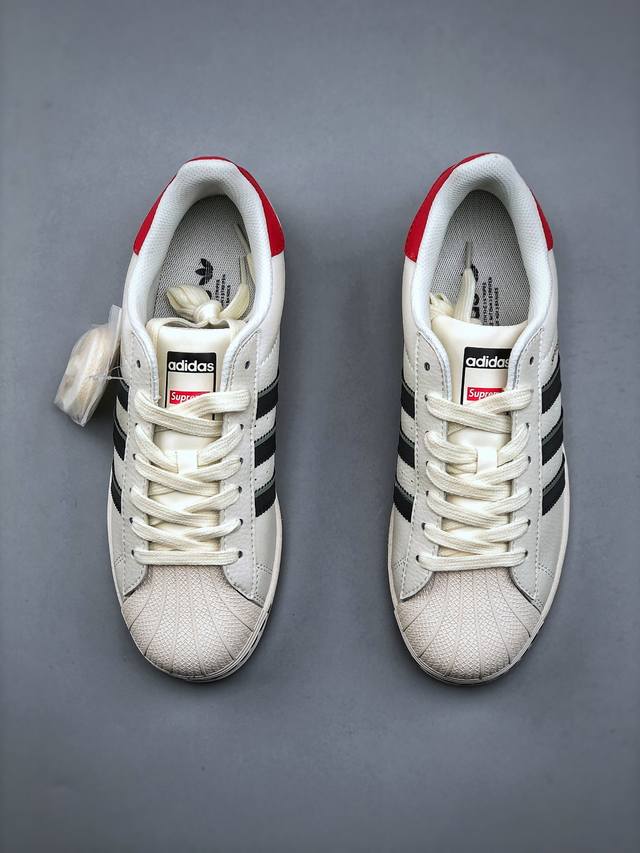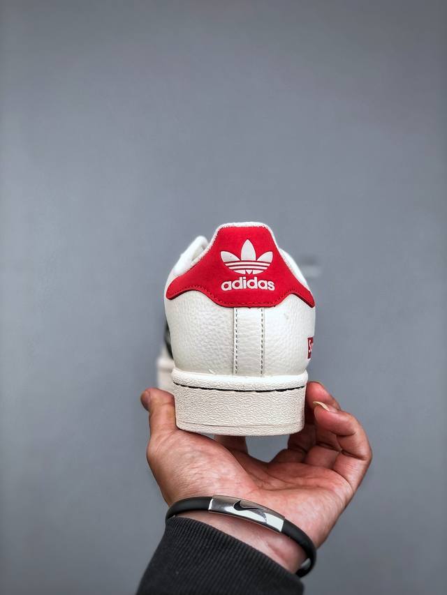 / Adidas Originals Superstar X Supreme 磨砂红 采用全新头层拼接皮革材质后跟采用特色3D立体印字 渠道正品订单 诠释市场最高工