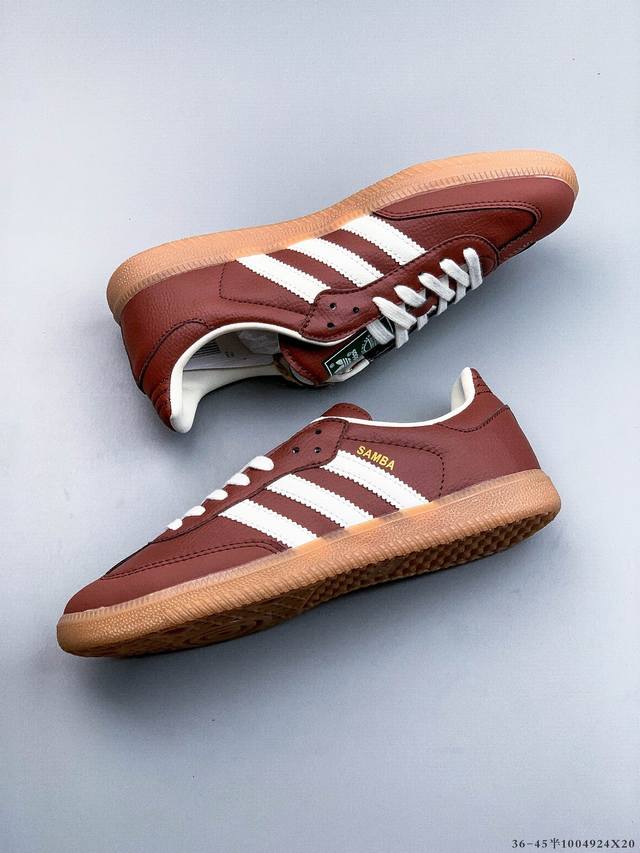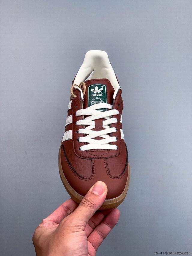 Adidas Samba Og 经典德训鞋休闲板鞋 Adidas 近70年的经典Samba Og 修长的鞋楦,略微尖尖的鞋头,翻毛皮的鞋头拼接,这些我们都看得到的元素正是Samba的设计灵魂 4924X20