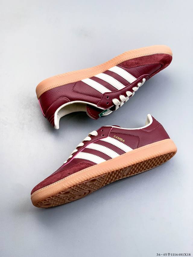 Adidas Samba Og 经典德训鞋休闲板鞋 DDD Adidas 近70年的经典Samba Og 修长的鞋楦,略微尖尖的鞋头,翻毛皮的鞋头拼接,这些我们都看得到的元素正是Samba的设计灵魂 DDD 1116481X18 DDD