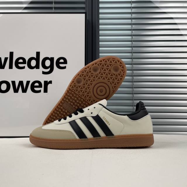 韩国鬼佬指定订单 Adidas 近70年的经典Samba Og 原装全头层制作超软头层真皮杜绝劣质仿皮 修长的鞋楦,略微尖尖的鞋头,翻毛皮的鞋头拼接,这些我们都看得到的元素正是Samba的设计灵魂