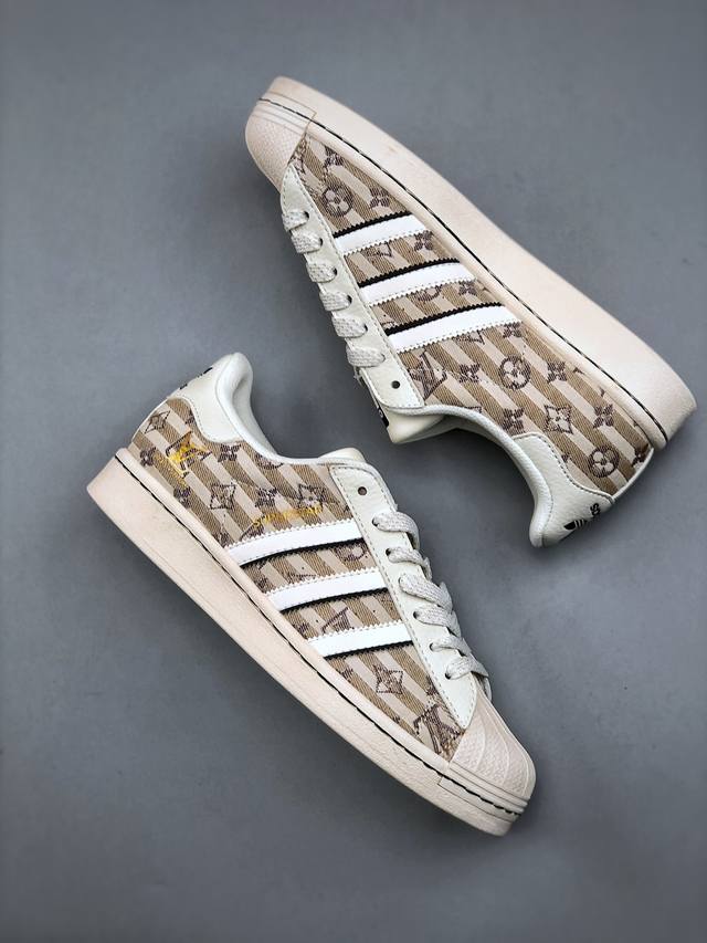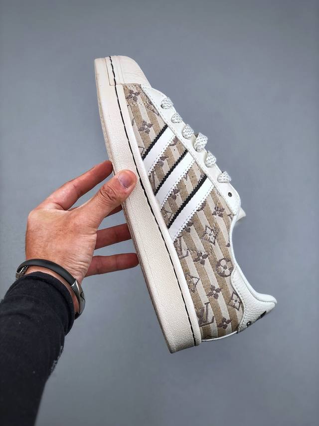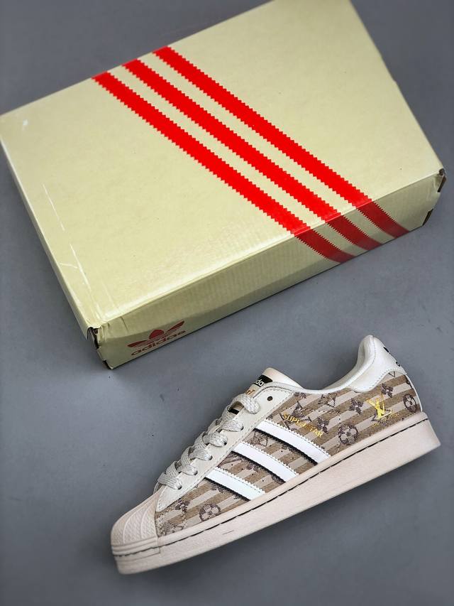/ C版 Adidas Originals Lv联名款黑白金配色 贝壳头 采用全新头层拼接皮革材质后跟采用特色3D立体印字 渠道正品订单 诠释市场最高工艺水平全鞋进