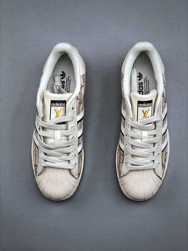 C版 Adidas Originals Lv联名款黑白金配色 贝壳头 采用全新头层拼接皮革材质后跟采用特色3D立体印字 渠道正品订单 诠释市场最高工艺水平全鞋进
